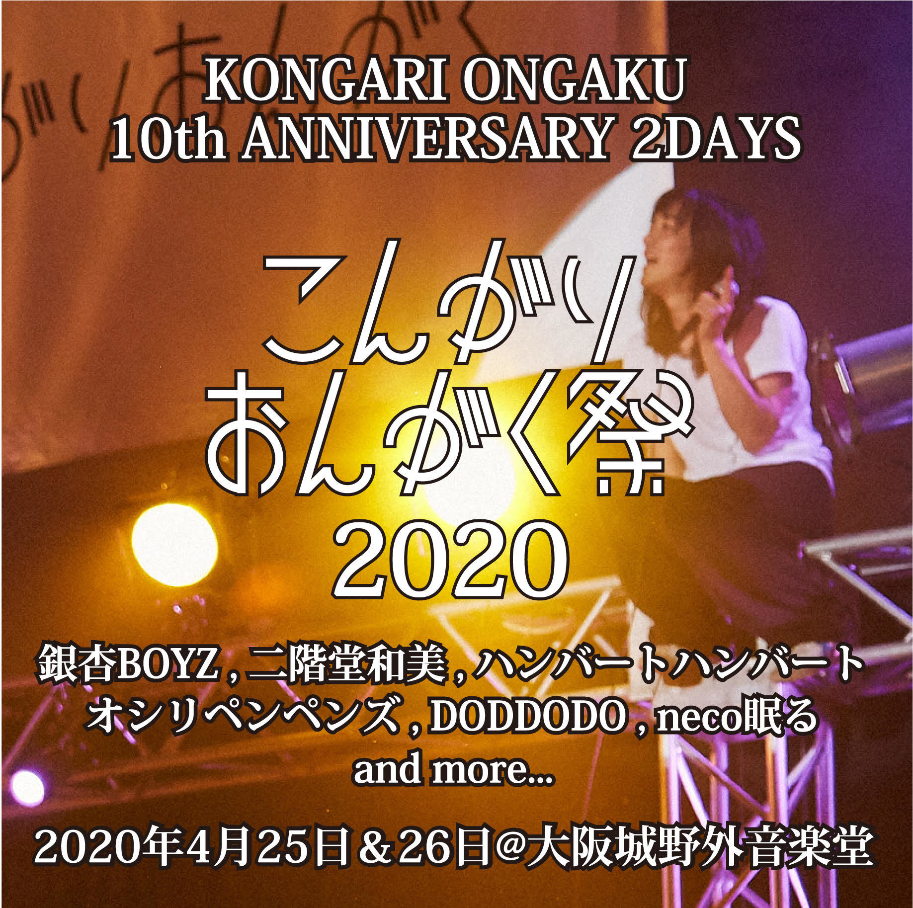 本イベントは大阪発のアーティストであるneco眠る、DODDODO、オシリペンペンズによる音楽レーベル「こんがりおんがく」主催の、場所や世代やシーンを超えて行われる老若男女対応型のフェスティバルとなっており、レーベル設立10周年となる今年は2DAYS開催される。