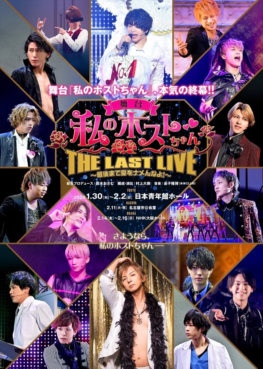 舞台『私のホストちゃん』THE LAST LIVE ~最後まで愛をナメんなよ!~の東京公演は2月2日(日)まで、その後、2月11日(火・祝) 名古屋市公会堂、2月14日(金)~2月16日(日) NHK大阪ホールにて上演される。