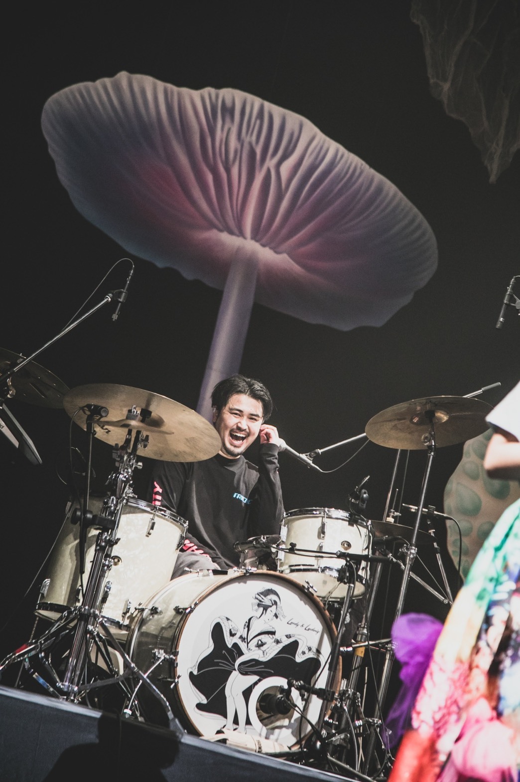 えみそんが「男性目線で初めて書いたバラード」と紹介していた「12月のブルー」は6分超の大作バラード。鍵盤の音色を軸にドラマティックな展開をする曲で、特に転調を機にバンドサウンドが一気に溢れ出す終盤は生で聴くと圧巻だ。観客もじっと聴き入るなか、アウトロではえみそんがスキャットを披露。関口の重々しいキック3発で同曲は幕を閉じた。そして「0:25」は、まず、えみそんのソウルフルな歌い出しに意表をつかれる。分かりやすい“癖”やそれっぽく見えるフックに頼ることなく、どの曲も分かりやすくクリアに歌えることがボーカリスト・えみそんの長所だとしたら、この曲ではその揺るぎない土台を基に艶っぽい表情を見せている。この人には私たちの知らない引き出しがまだまだ隠されているのではないか、とドキドキさせられた。「0:25」は三浦が“ひろせにカッコいいラップをしてほしい”というイメージで作った曲らしいが、関口も歌唱に参加しているし、先述の通りえみそんのボーカルも他とは一味違う。バンド全体に新しい風を入れるような存在になったようだ。