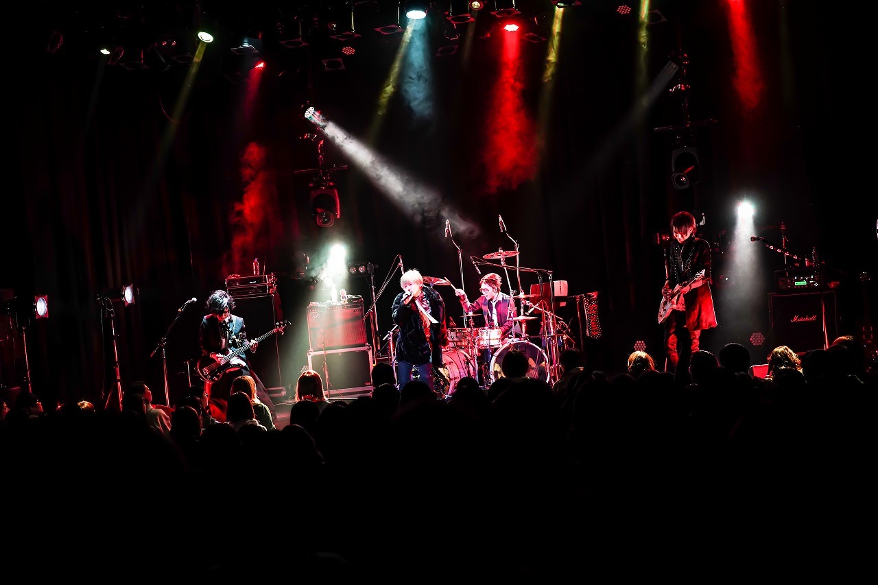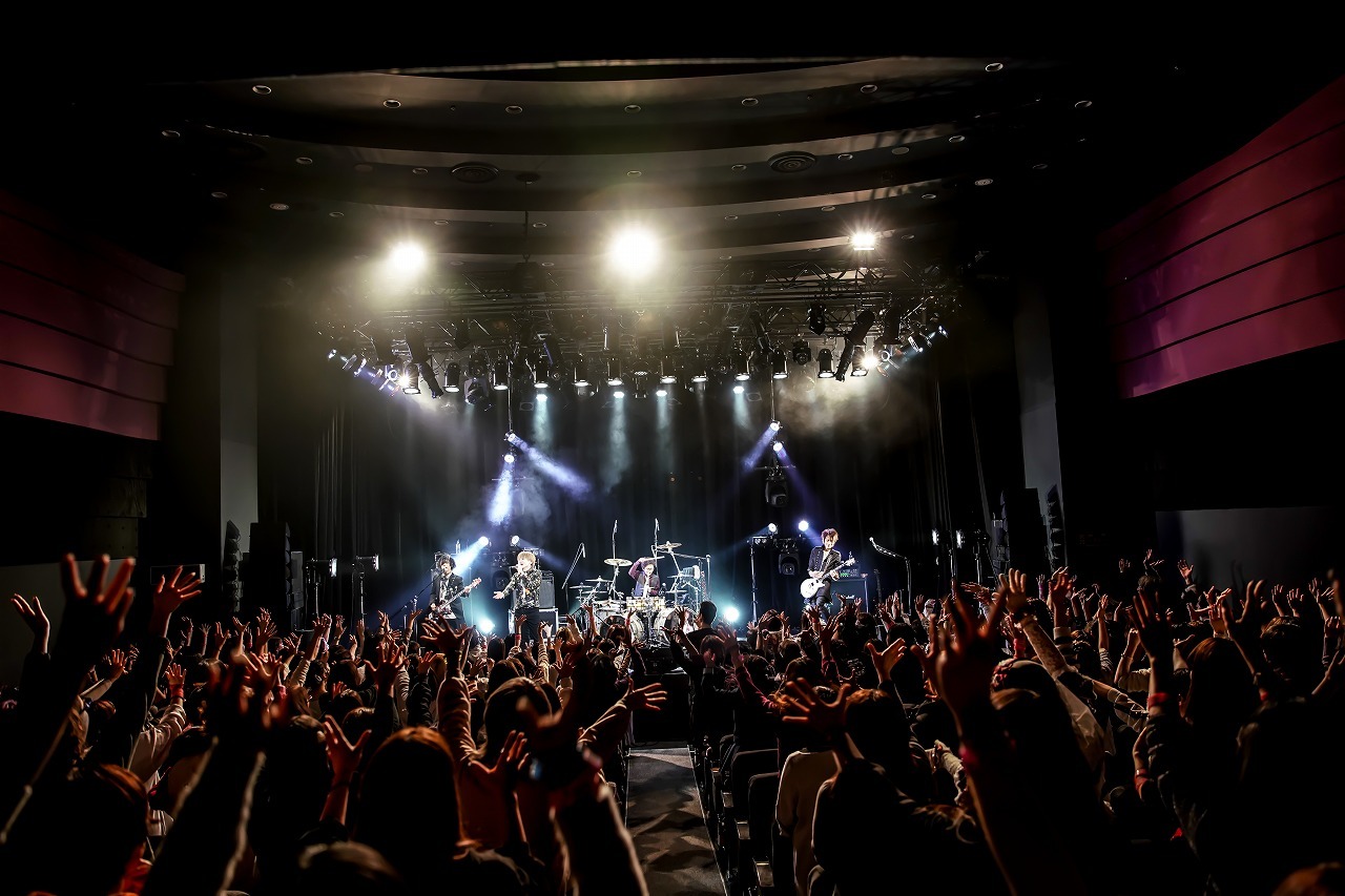 さらに、「渋谷、まだまだいくぞ!」とみくが気勢を上げると……突然、Reoがバースデーソングのメロディを奏で始め、合唱するオーディエンス。みくが「え……ありがとう」と驚く中、バースデーケーキを持って登場したのは、なんとアンティック-珈琲店-のtakuyaだ。オーディエンスも騒然とする中、「めっちゃうれしい! せっかくだからギター弾いてよ!」とみくが頼んで、takuyaとゆうきの加入後、初めてリリースした曲「覚醒ヒロイズム」をtakuyaも加わって演奏することに! みく、Reo、カノンそれぞれと向き合い、ギターソロをセンターで弾くtakuya。各々の道を歩んでいっても、こうしてたまにでも顔を合わせて音を楽しめたら、それはすごく素敵なことである。