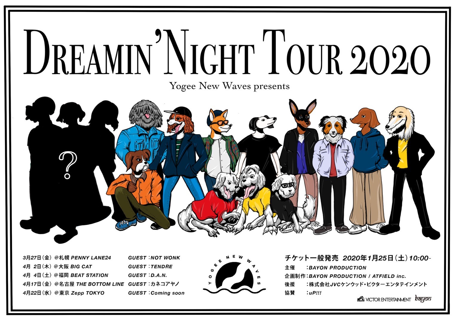 2020年3月27日(金)札幌 PENNY LANE 24を皮切りに開催されるYogee New Waves恒例の自主企画イベント『Dreamin’ Night Tour 2020』のゲストアクトが発表された。