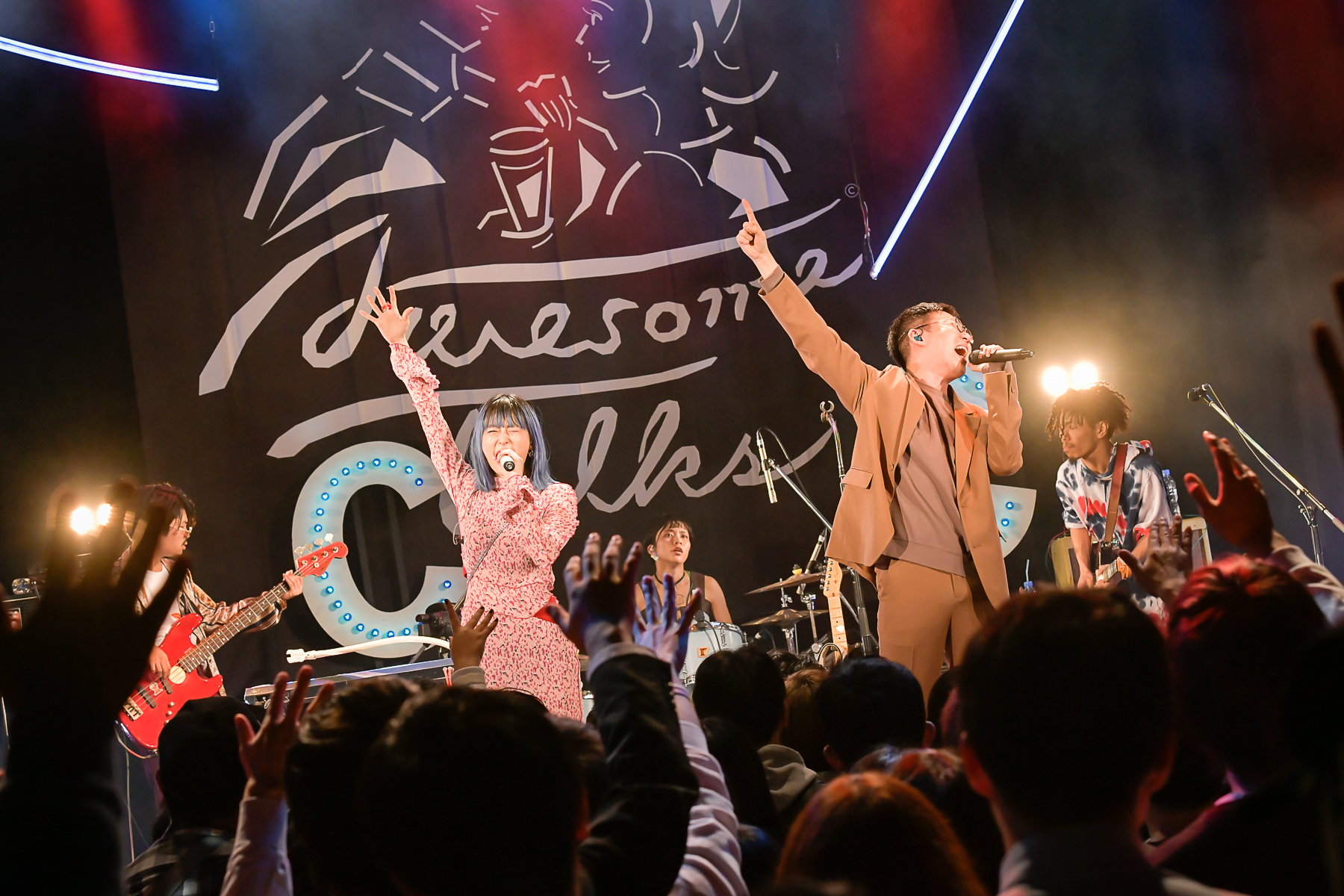 8月14日のライブをもってベースのマツザカタクミが脱退。その際のコメントに「メンバー未満友達以上の関係が新しく始まります」とあったように、お互いを尊重したリスタートを切った新生Awesome City Club。加えてレーベルの移籍や、PORINが小沢健二のアルバムに参加したり、モリシーが須田景凪やDAOKOのサポートを行うなど、メンバー各々の活動も注目される1年となった。ことさら焦るムードでもなく、しかしサポート・ベーシストを迎えて、本来なら『RISING SUN ROCK FESTIVAL』で新体制初披露の予定だったが、ご存知の通り彼らが出演する初日は残念ながら中止に。しかしその後のフェスで精力的なスタンスを見せ、さらに新しいACCを見せる機会が今回の『Awesome talks-Nice Buddy Tour 2019』の意義だったと思う。11月から全国5カ所6公演の今回のツアーは、それぞれ盟友や敬愛するアーティストを迎えたバンド史上初の2マン・ライブで、各々、雨のパレード、iri、Creepy Nuts、ヤングオオハラ、SARM、bonobosと、ACCの意欲が垣間見えるラインナップ。ツアー・ファイナルとなったクリスマス・イヴにはこの日が初対面だという大先輩・bonobosを迎えた。
