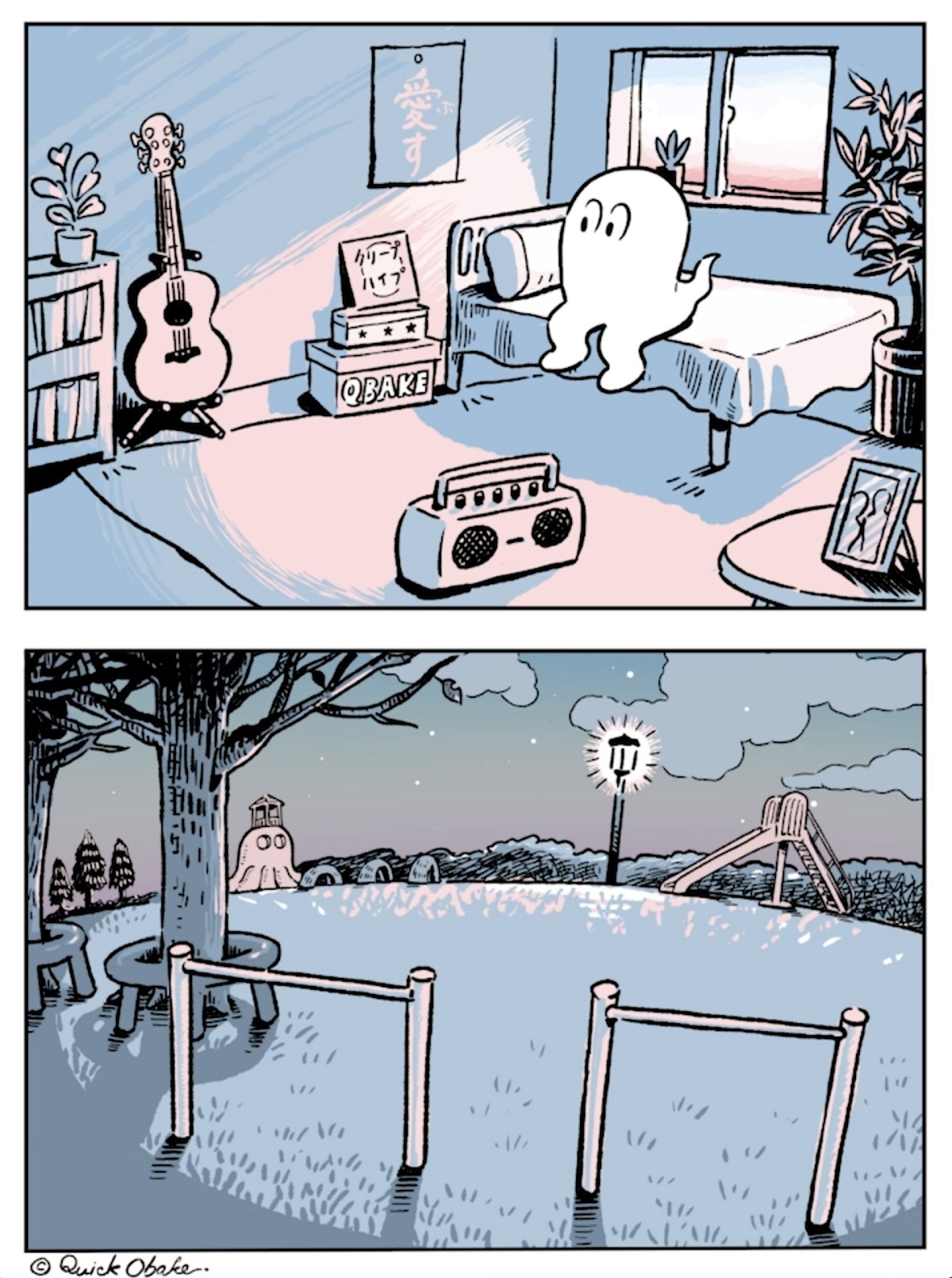 独特のタッチでクセになるループGIF動画をSNS上で発信する"おーくボ”。オバケのキャラクターをメインにコマからコマへキャラクターが移動するGIF漫画の新ジャンルを開拓している"クイックオバケ"。京都を拠点に幅広い活躍を見せている"かずお"の3名が、「愛す」を自由に解釈して作品を制作した。