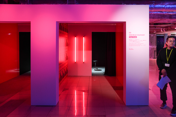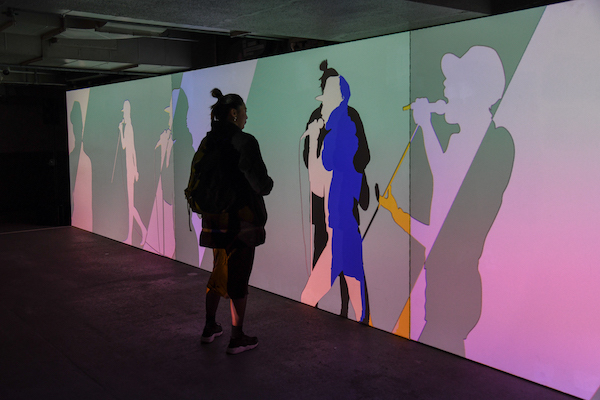 続く地下3階にも2つのアトラクションがある。片方の《ANOTHER ONE BITES THE DUST − Fragment Shadow》は、クイーンのメンバーのシルエットや歌詞が映し出される横幅13メートルのプロジェクション空間に、自分の影を投影することができる。いわば全身で楽しむ“現代的な影絵遊び”というべき体験だ。