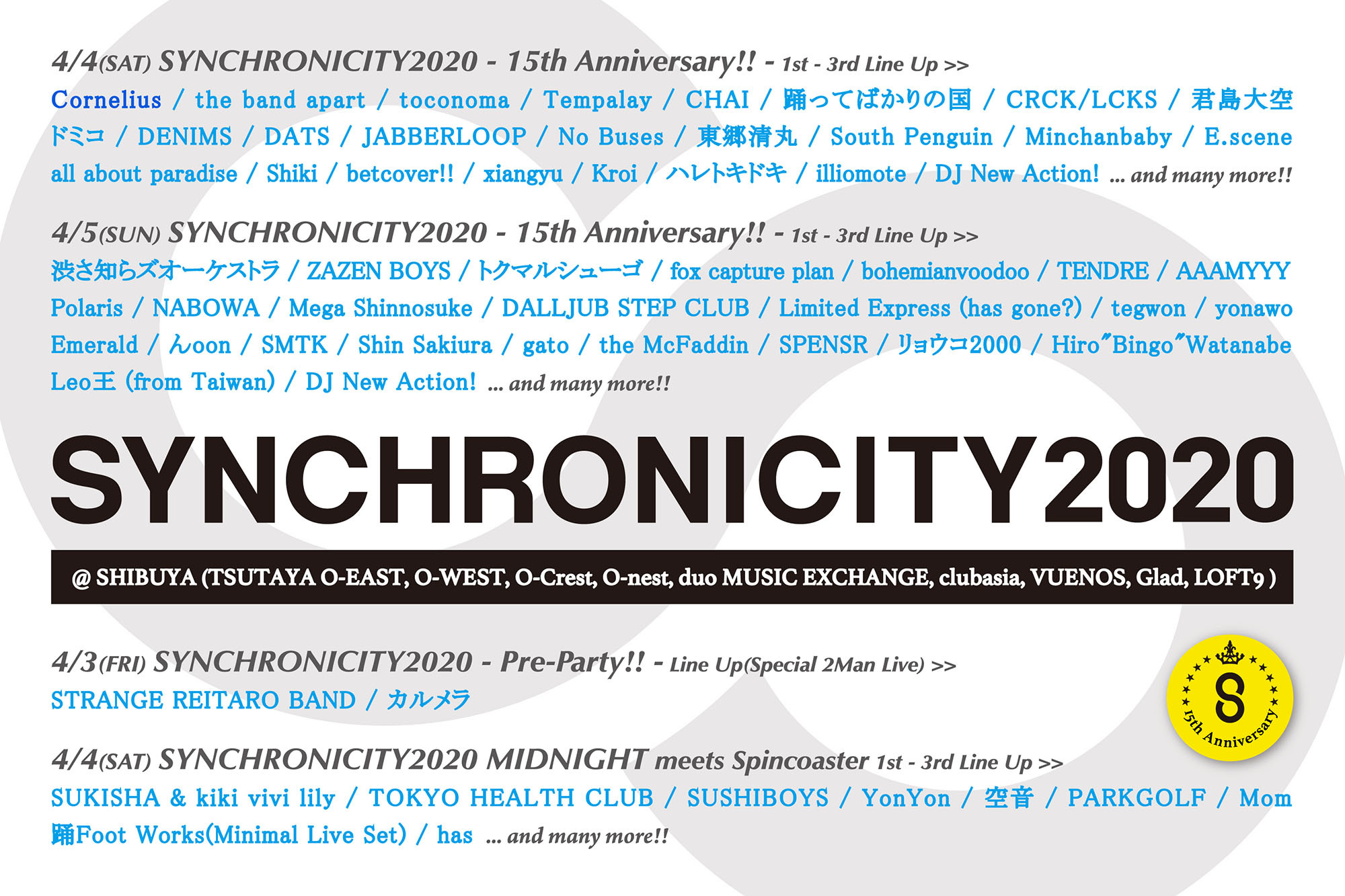 2020年4月3日(金)~4月5日(日)に東京・渋谷にて開催される都市型フェスティバル『SYNCHRONICITY2020 – 15th Anniversary!! -』の第4弾ラインナップが発表された。