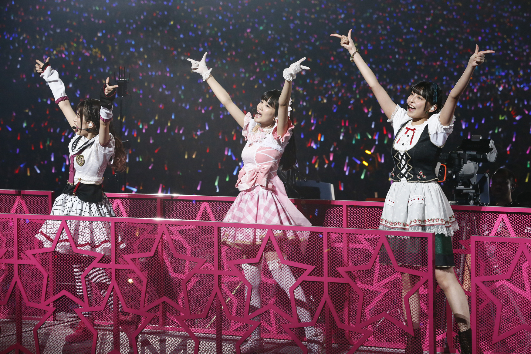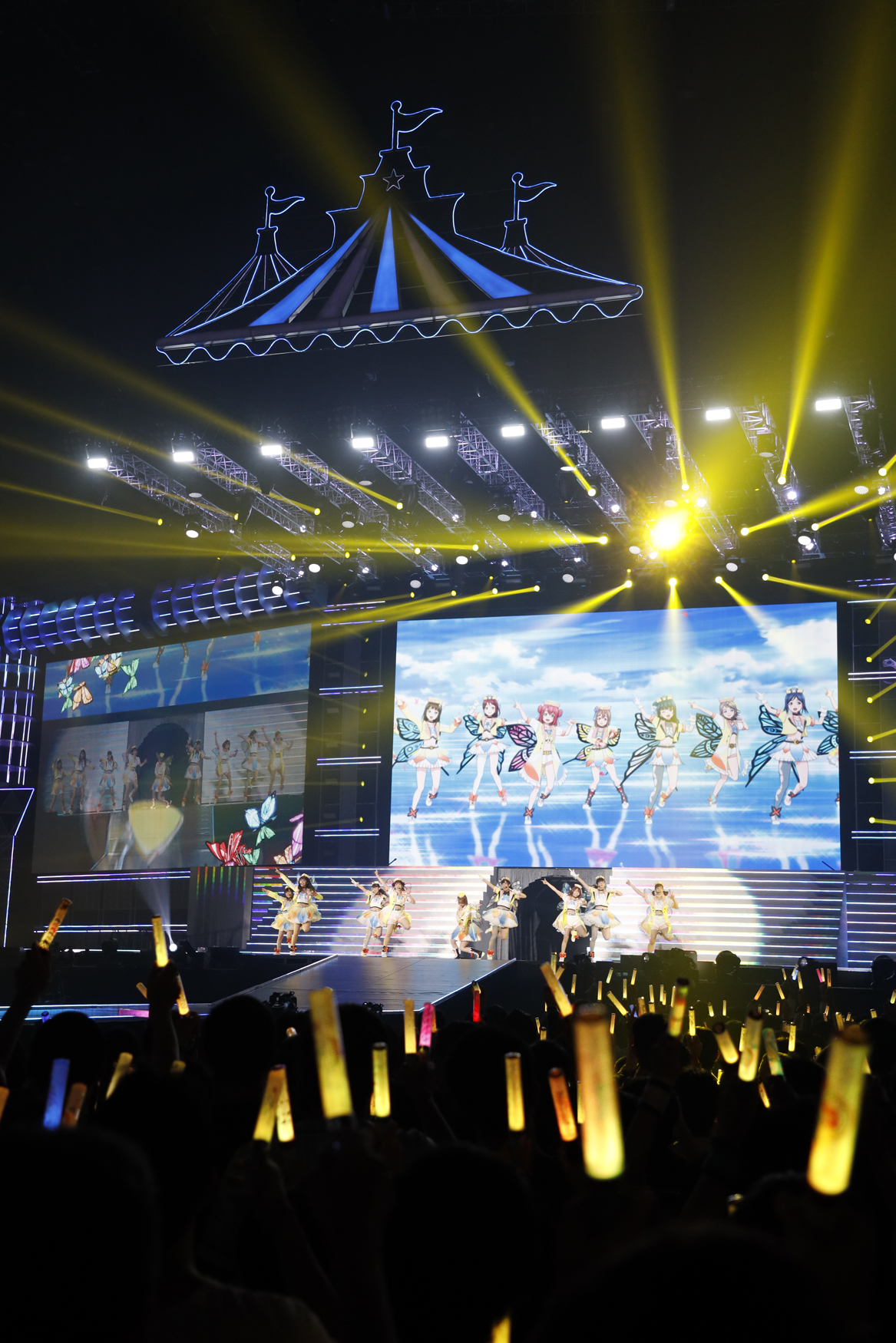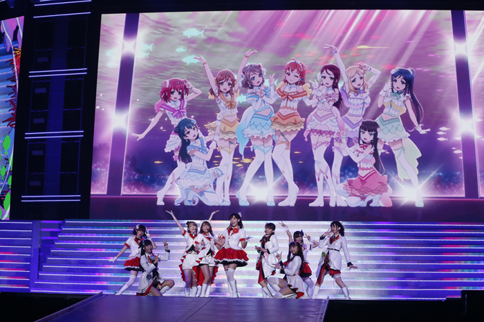 劇場版『ラブライブ!サンシャイン!!』でも、未来への新たな旅立ちを力強く歌って物語を盛り上げたナンバーだけに、曲中のシャウトでは客席も積極的に声を上げて合わせていく。そして間奏では「いくぞ、さいたまスーパーアリーナ!」のかけ声と共に熱いコール&レスポンスを交わしていく。そしてラストは中央ステージで見事なダンスを決め、フェスの折り返しとなるステージを熱く盛り上げた。