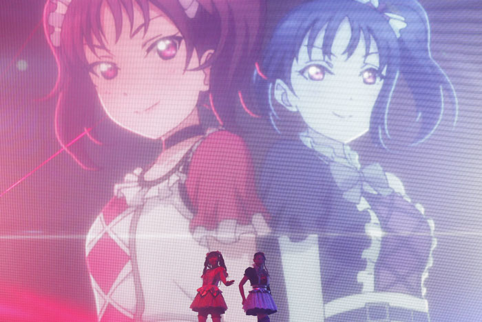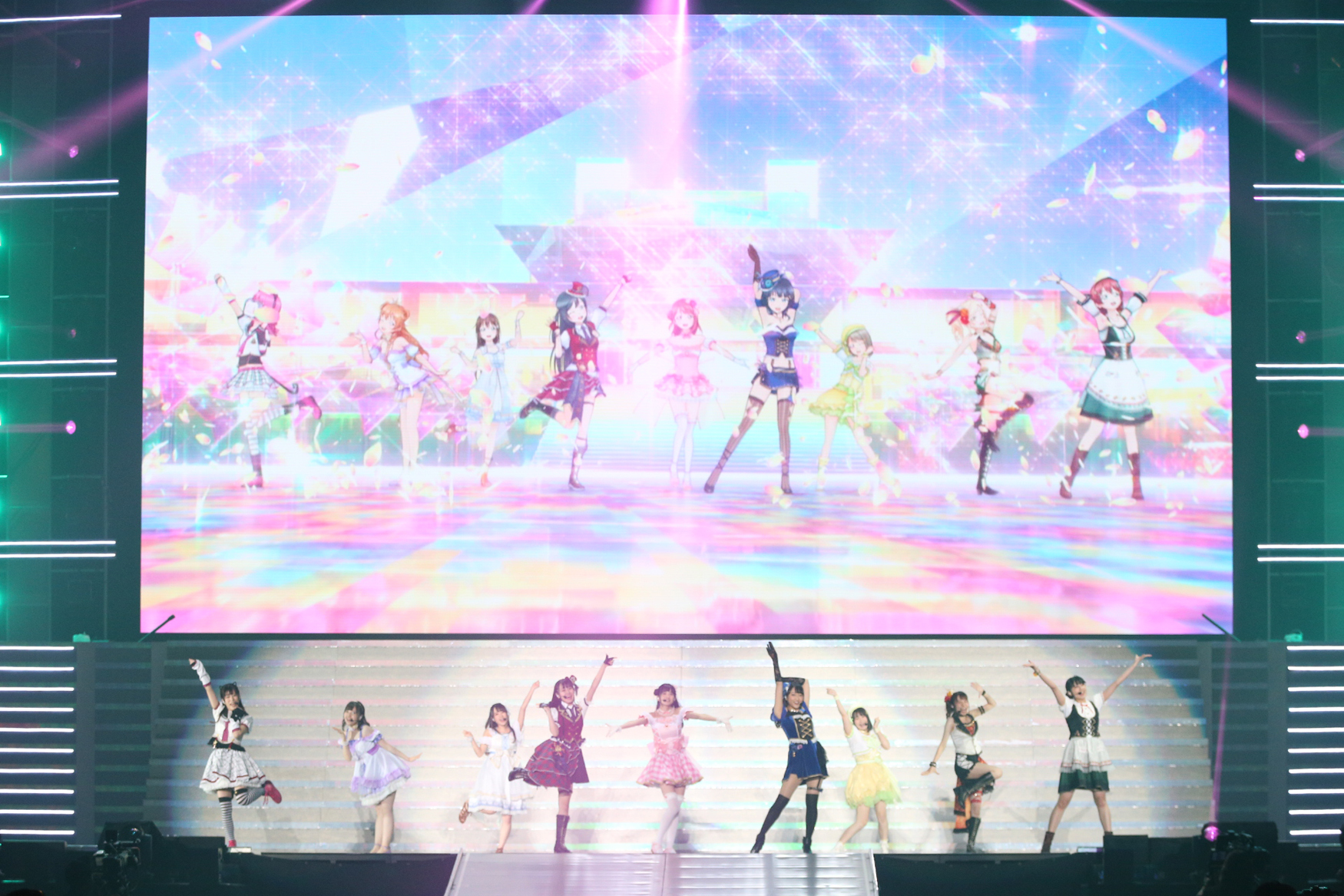 歌を終えたAqoursからのエールに客席も大歓声で応える中、ステージを引き継いだのは昨年12月にファーストライブも成功させた虹ヶ咲学園スクールアイドル同好会の面々だ。