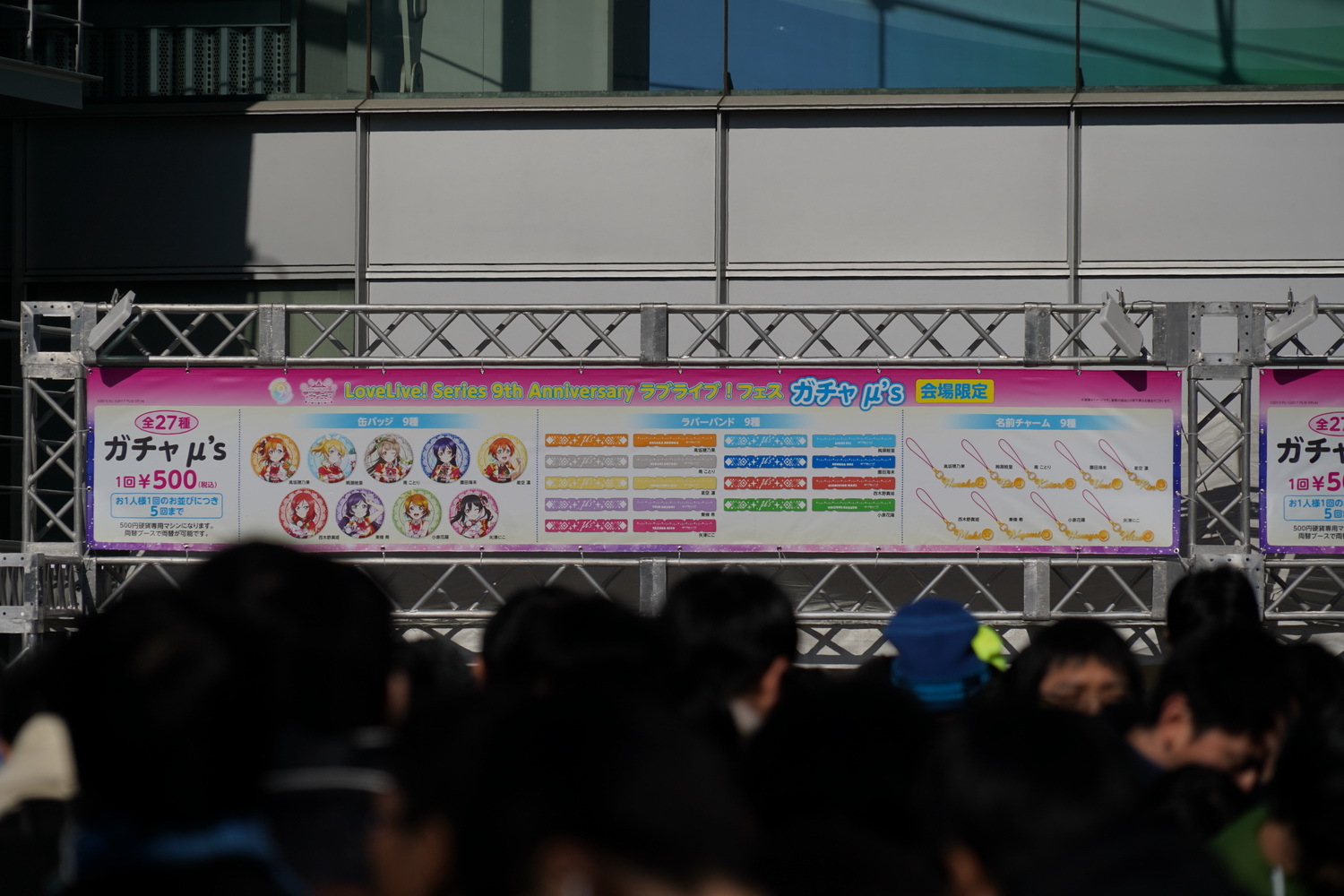 開場後もその熱気は高まる一方。アリーナはステージ裏のスタンド席まで開放するほどの超満員となり、ステージには「九周年」と各スクールアイドル達の人数を意味する巨大な「9」のオブジェが建てられ、やわらかな桃色のスポットライトがそれを照らし出す。そしてBGMにμ'sのナンバーが流れると、客席のファン達がすぐさま曲に合わせたコンサートライトを輝かせて、予行演習とばかりにコールを叫びながら四年弱ぶりにステージへと帰って来るμ'sを迎える準備を整えていた。