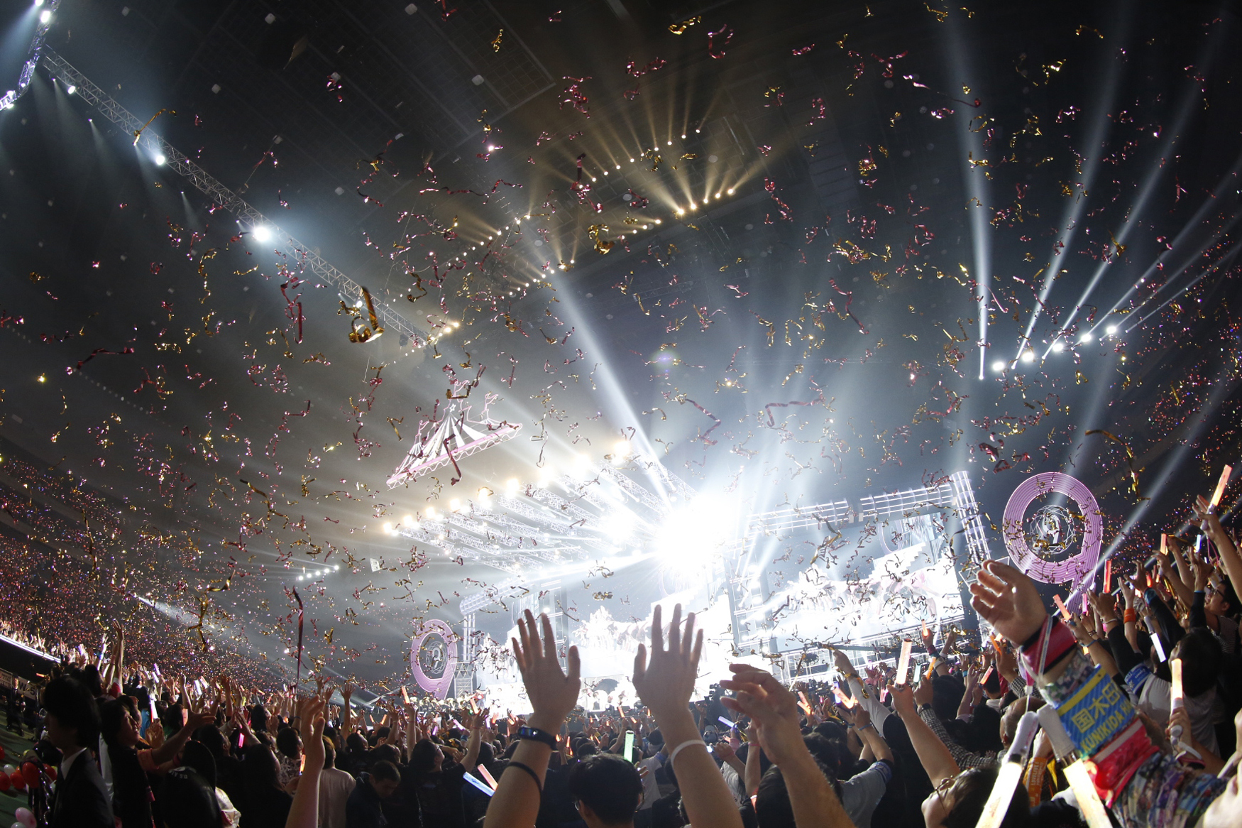 歌い終えた9人はステージ上から客席全てを見回し、喜びと感謝の言葉を口にする。