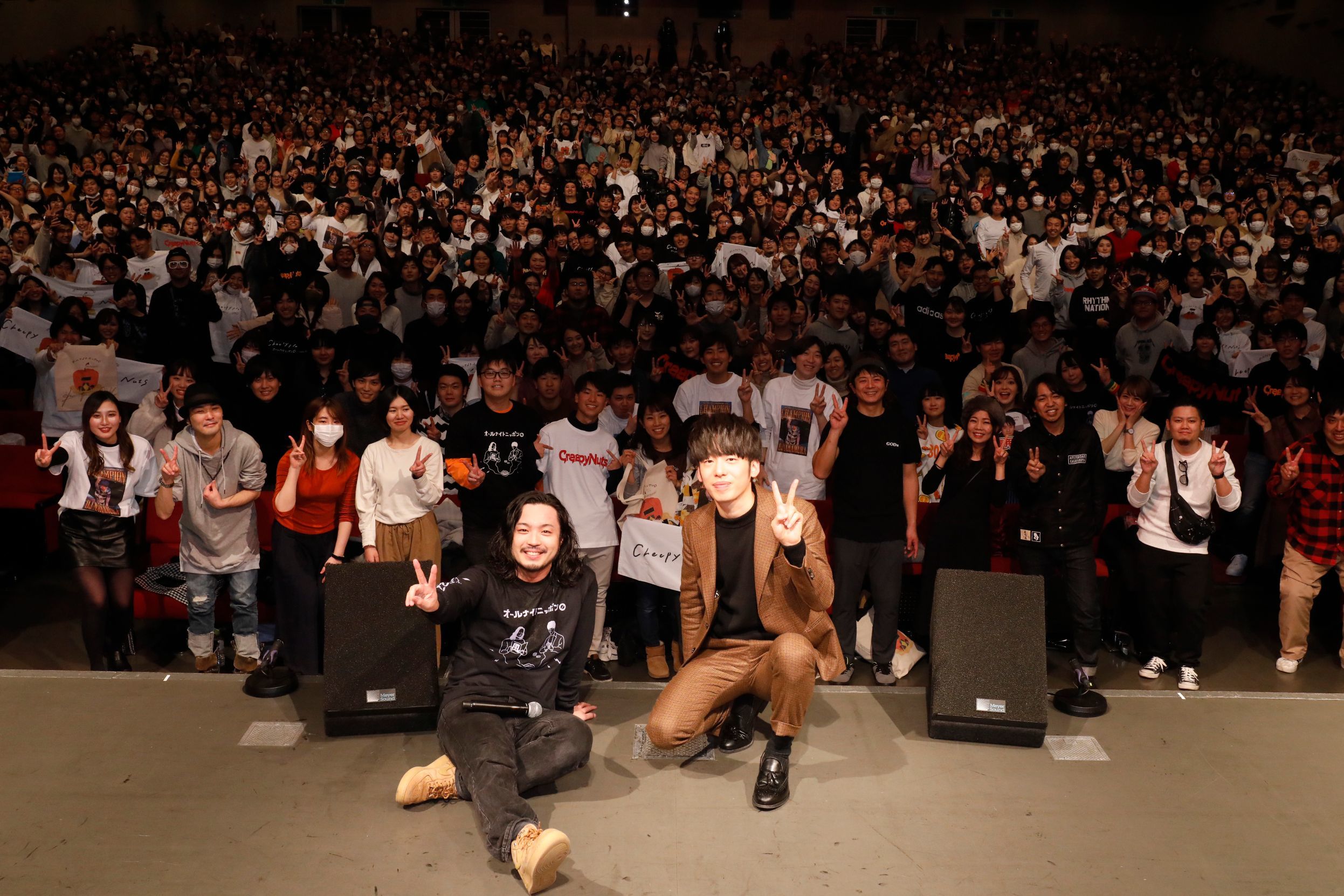 2月9日(日)、Creepy Nutsが東京・中野サンプラザにて『Creepy Nutsのオールナイトニッポン0』番組イベントを開催。会場に2,100人、全国各地の映画館ライブビューイングに1万人を超えるリスナーを集めた。