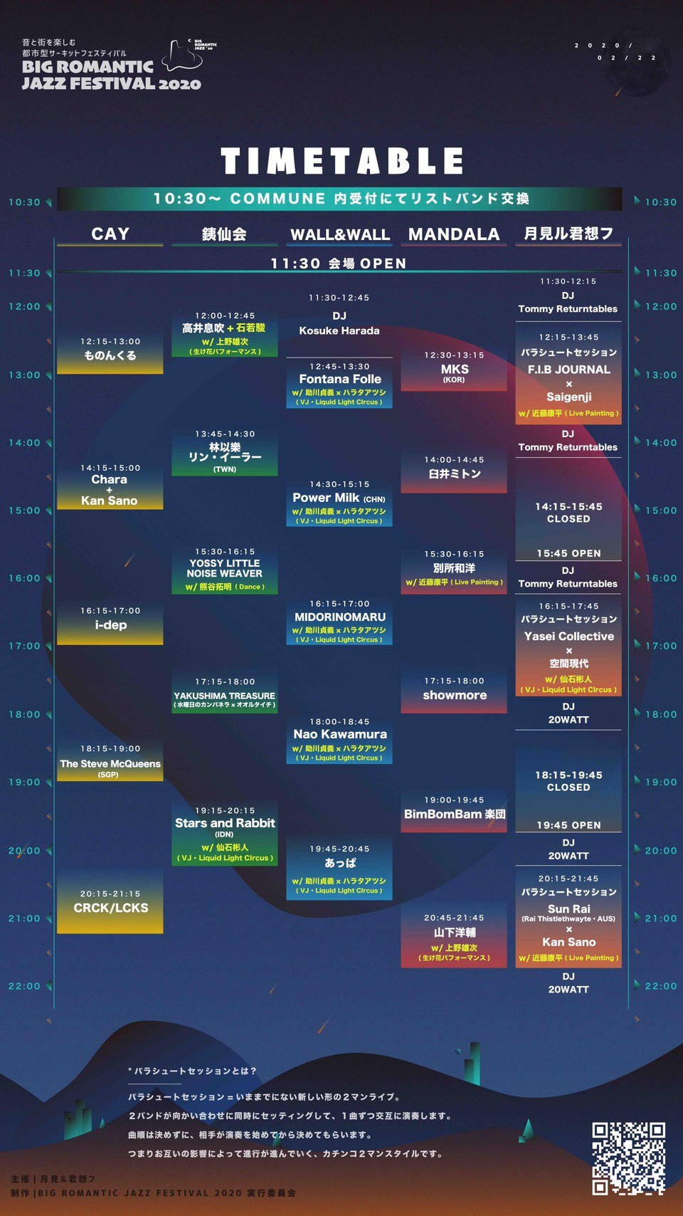 生け花、絵描き、ダンスにリキッドアート。その道の達人たちが、ライブステージに様々なパフォーマンスを仕掛ける。月見ル君想フにはDJ Tommy Returntablesと20WATTが、WALL&WALLにはDJ Kosuke Haradaが出演し会場を盛り上げる。当日は、華道家・上野雄次と共作した装飾車BIG ROMANTIC JAZZ号が会場間を移動するという演出も予定されている。また、高井息吹にドラマー石若駿が参加し、「高井息吹+石若駿」で出演することが同時に発表になった。