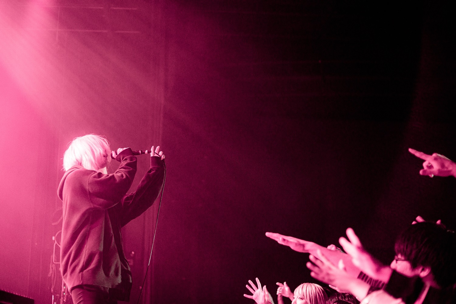 「紫陽花」「image_____」「故に枯れる」でさらにトーンが変わっていき、ラストに演奏されたのは「思い出は笑わない」。誰もが固唾を飲むようにその歌を聴く。張り巡らされる緊張感。しかし各曲にはしっかり体温がある。みんなそれぞれに違いがあること、それでも共存ができること。そんなメッセージを受け取ることができた。前2組のフィジカルな凶暴性とは違い、内側に突き刺さるバイオレンスさがあった。