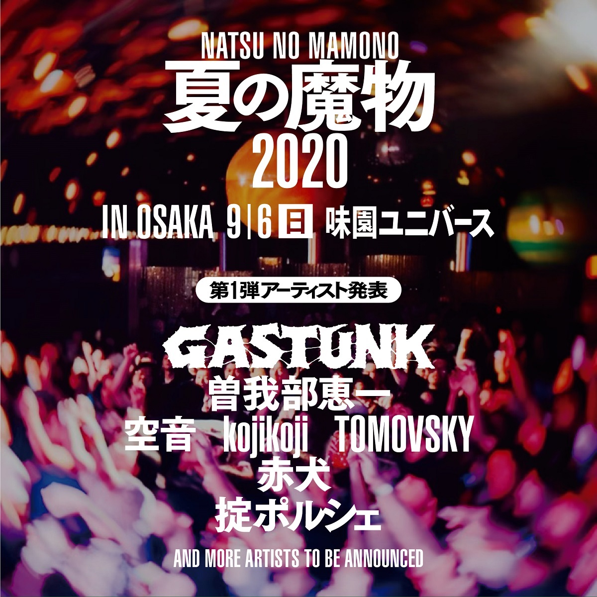 大阪編メインアクトは伝説のバンド・GASTUNKが登場。他には『春の魔物』にも出演する空音、kojikojiの出演が決定。昨年に引き続き、地元・大阪の赤犬や、曽我部恵一、TOMOVSKY、掟ポルシェといった魔物には欠かせないラインナップも顔を揃えた。