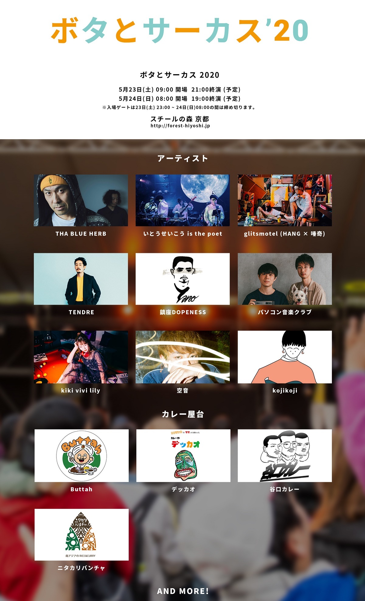 5月23日(土)、24日(日)にスチールの森 京都で開催される、音楽とカレーとキャンプを楽しむ野外フェス『ボタとサーカス 2020』の第3弾ラインナップとして、TENDREの出演が発表された。