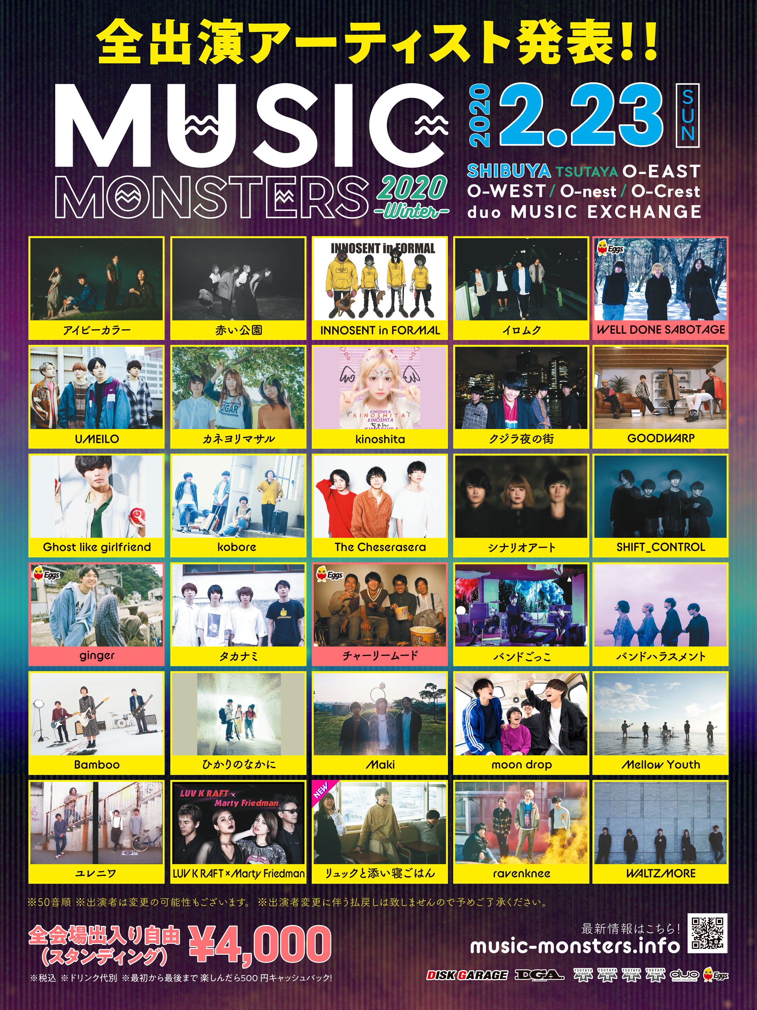 2月23日(日・祝)に開催される都市型音楽フェス『DISK GARAGE MUSIC MONSTERS』の最終出演アーティストが発表された。