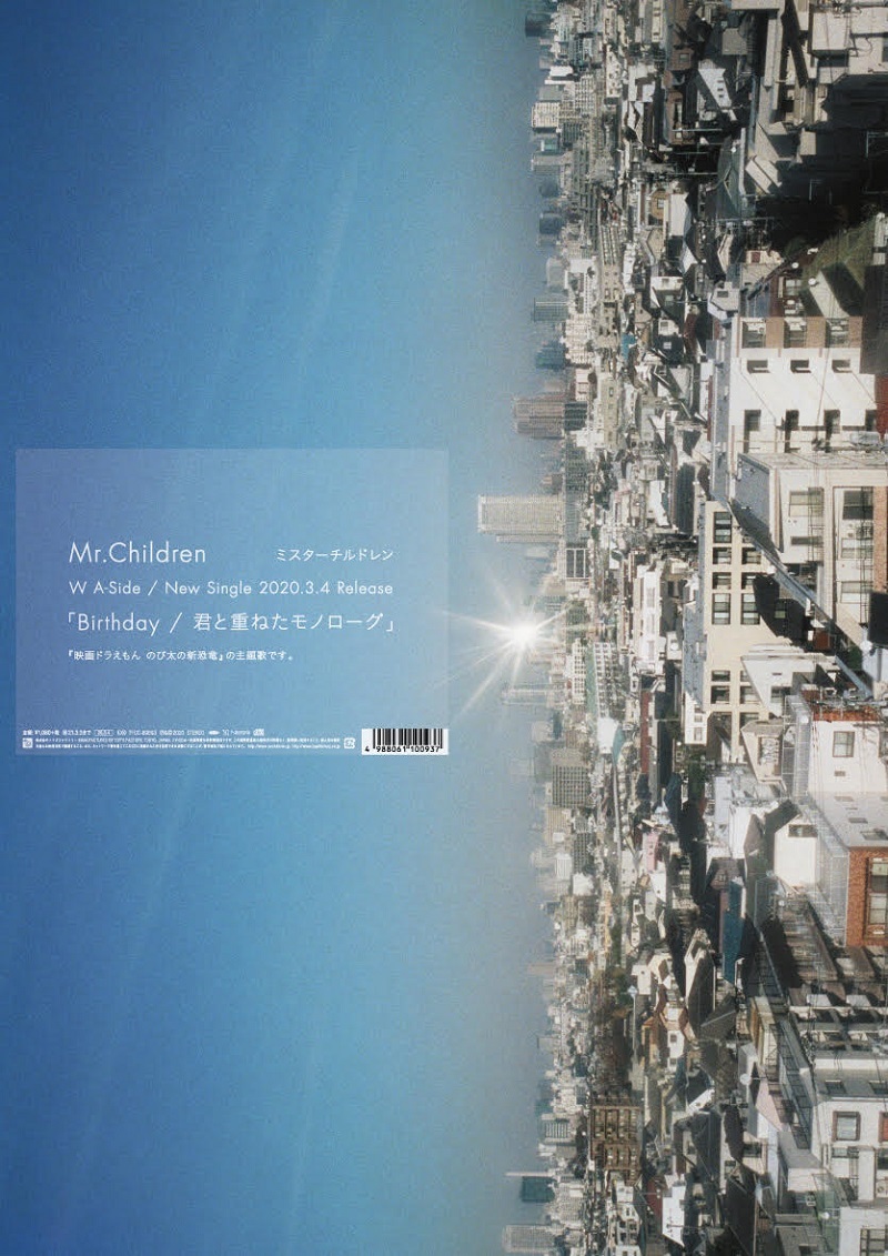 Mr.Childrenが3月4日にリリースするニューシングル「Birthday / 君と重ねたモノローグ」のジャケットとポスターのビジュアルを公開した。