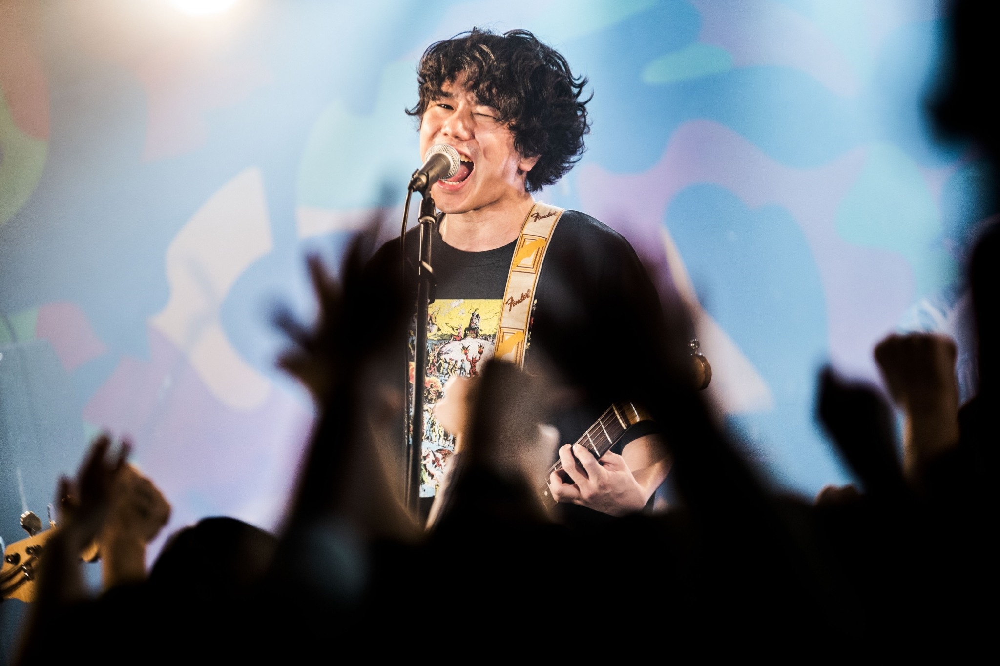 トップバッターのANTENAは揃いのシャツに身を包み「心地よく、横に揺れながら聴いてください」と、「年中無休」からPOPでノスタルジックなメロディ、渡辺諒(Vo.Gt)の浮遊感あるファルセットでオーディエンスを惹き込んでいく。切なげな歌詞に池田晃一(Gt.Key.Cho)が感情的な旋律をかき鳴らす「天国なんて全部嘘さ」、1月にリリースされたばかりの新アルバム『風吹く方へ』から、ダンサブルなナンバーの「上海ミッドナイト」など、スケールも様々な楽曲で会場の熱を高めていく。