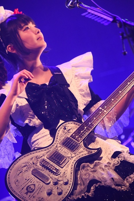続いて「Choose me」「PAGE」「Mirage」といった楽曲を緩急をつけプレイすると、SAIKI以外のメンバーがステージを降りる。ステージに残ったSAIKIが「BAND-MAIDの目標は、“世界征服”です。それを表現できるのは、やっぱり楽曲で、『WORLD DOMINATION』というアルバムをリリースしてからその名前をつけたツアーを約2年やってきて、今日がファイナルです。なので、スペシャルなことをしたいと思います。」と語り、KANAMI(Gt.)呼び込み、アコースティック編成で、2人でプレイを行う旨を伝える。