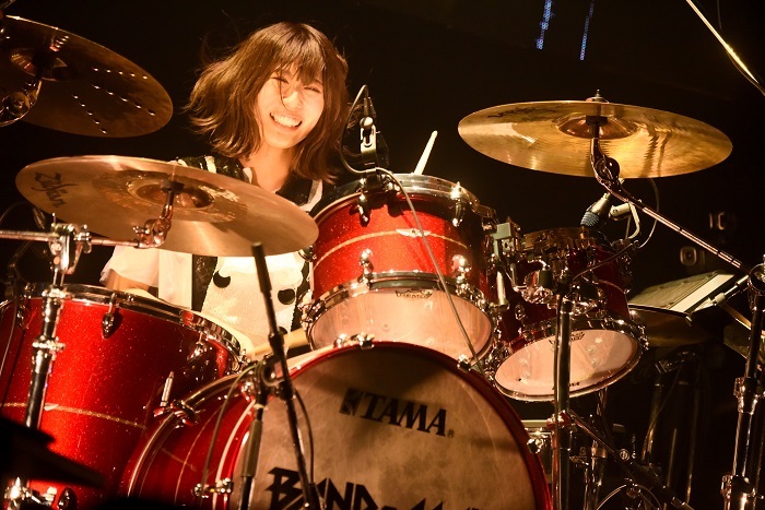 お給仕後半は、「alone」「DICE」といった代表曲を投下し、少し疲れが見えてきたご主人様・お嬢様にガソリンを注ぎ込む。ここからAKANEの力強いドラムが鳴り響き、楽器隊によるセッションが行われると、SAIKIの「渋谷、もっといくよ!声聴かせろよ!」の言葉に触発され「Don't you tell ME」で再び熱狂の渦へ。その熱狂のまま、ライブでの楽曲アレンジが大好評の「Play」、目標の“世界征服”を宣告した「DOMINATION」を連続プレイ。