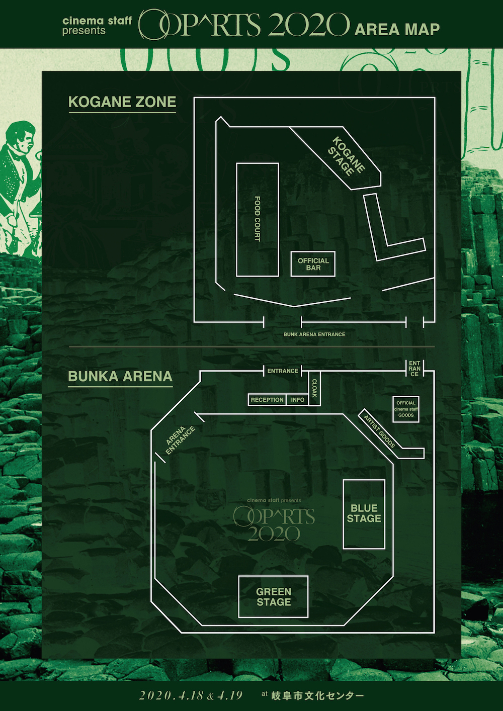同時に解禁されたエリアマップによると、岐阜市文化センターを『BUNKA ARENA』とし、ステージ名も岐阜県のカラーにちなんだ『GREEN STAGE』『BLUE STAGE』として2ステージが交互に進行される。また、岐阜市文化センターに隣接する金公園が『KOGANE ZONE』として発表され、フードコート、OFFICIAL BARの他、『KOGANE STAGE』が設けられており、こちらのステージでもライブが行われる。