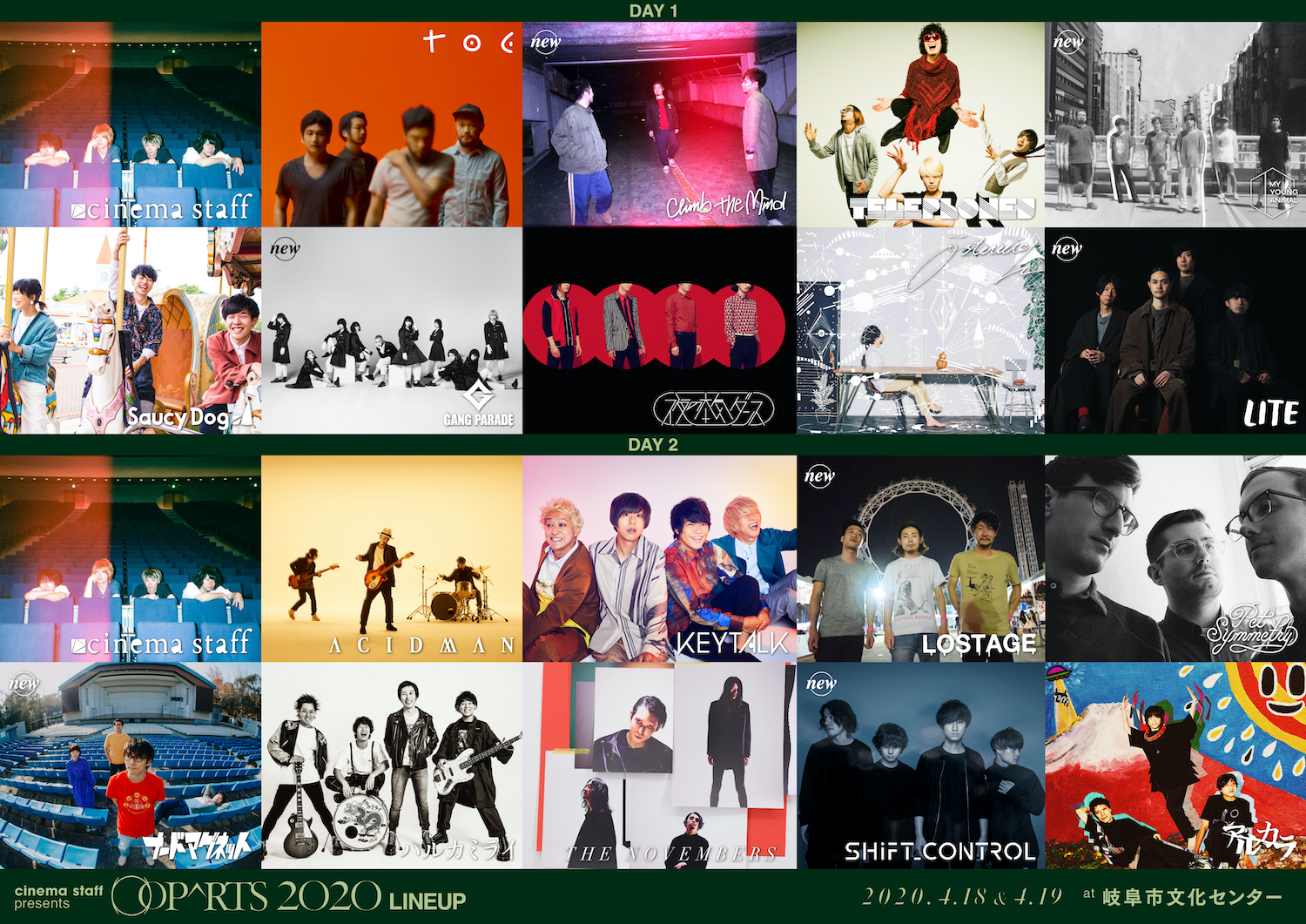 2020年4月18日(土)・19日(日)の2日間に渡り、cinema staffが地元・岐阜で開催する主催イベント『cinema staff presents 『OOPARTS 2020』』の最終ラインナップと日割り・会場エリアマップが発表された。