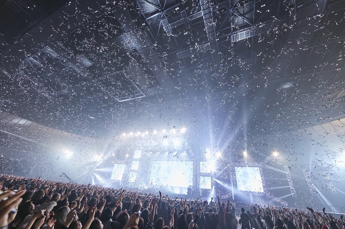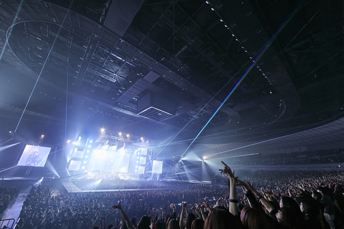誰もが陶然と聴き入っていくなかで始まったRUKA作の夏の終わりのロストラブソング「Lost in Blue」は、ダークな曲だらけの彼らだが、この曲のエンディングではメジャーコードへと転調。そこでYOMIが《最高の顔で笑うんだ》とストレートにポジティブなワードを伝え、歌うと、アリーナ全体が感動の嵐に包まれる。