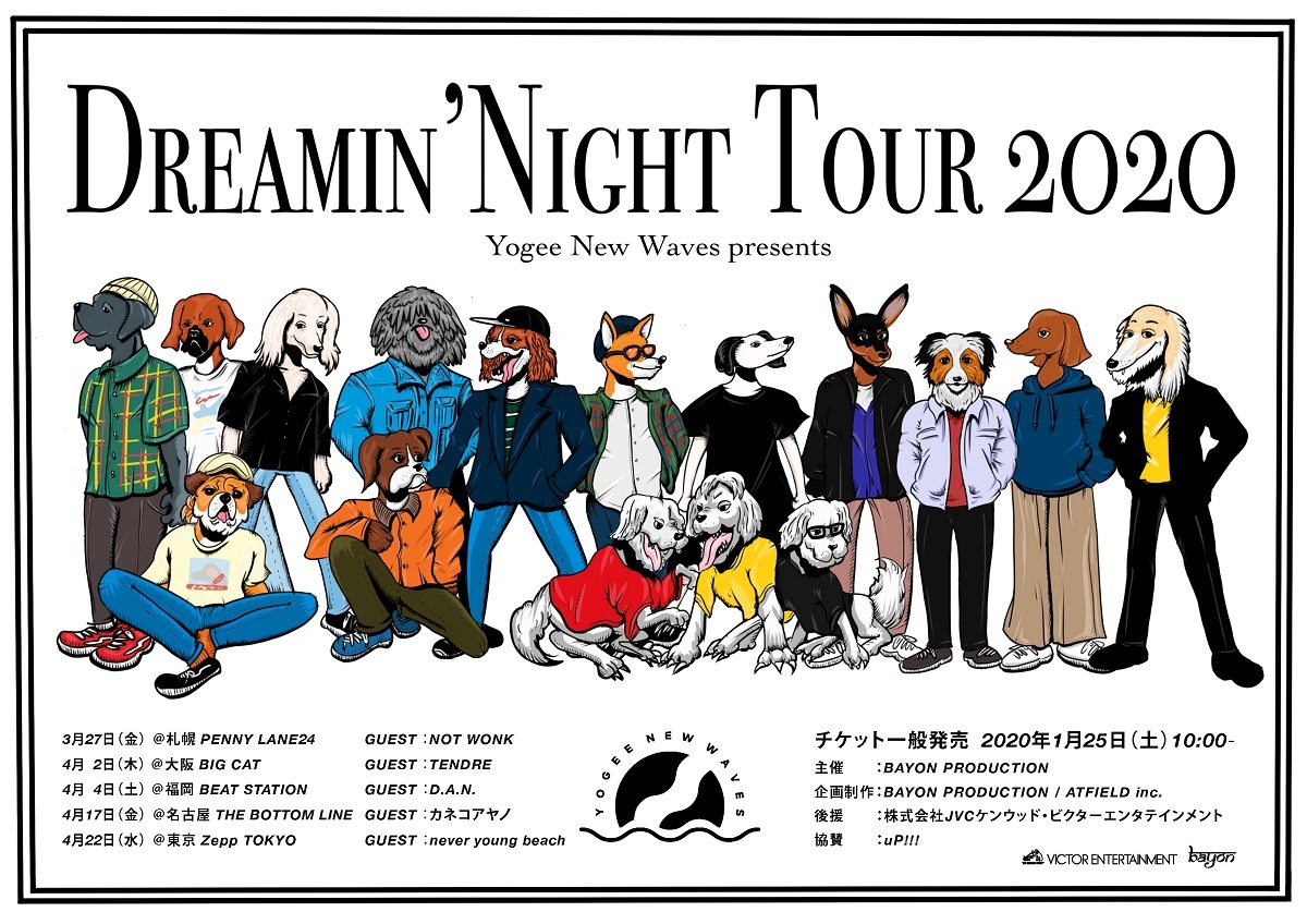 2020年3月27日(金)札幌 PENNY LANE 24を皮切りに開催するYogee New Wavesの自主企画イベント『Dreamin’ Night Tour 2020』のゲストアクトとしで、never young beachの出演が発表された。これで全ゲストが発表されたことになる。