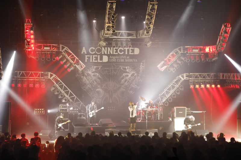 キリト(Vo)の誕生日当日である2月24日、『Angelo LIVE at LINE CUBE SHIBUYA「A CONNECTED FIELD」』がLINE CUBE SHIBUYA(渋谷公会堂)で開催された。近年恒例となっているこのバースデーライブは今回で9年目を迎え、年に一度の記念日を祝うべく、今年も満員のオーディエンスが集結した。