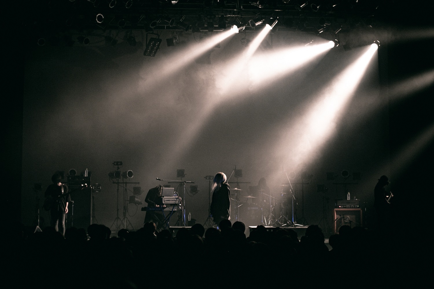 少し長くなってしまったが、この日の大トリを務めた眩暈SIRENは、そんな「薬」という言葉がふさわしい存在だろう。私は自分が嫌いです。周りからの目線ばかり気にして。生まれてこなければよかった人間だから。多数の男女が心の内側を独白していくシリアスなSEで、それまでの会場の空気をがらりと変えた5人は、エモやポストロックをベースにした繊細かつ激情的なバンドサウンドと、京寺が歌う憂いに満ちた旋律を響かせていく。美しく重なりあうコーラスをたたえた「紫陽花」や、感傷的なメロディーと美しいピアノの音色が胸に迫る「空気よりも透明な」、ウルの切実な咆哮や焦燥感たっぷりの2ビートなど、ラウドロック的な意匠も見せる「ジェンガ」など、ステージ背面に設置されたスクリーンに、歌詞や印象的なキーワードを抜粋した映像を流しながら次々に奏でられる曲達を、オーディエンスは固唾を飲んで聴き入っていた。