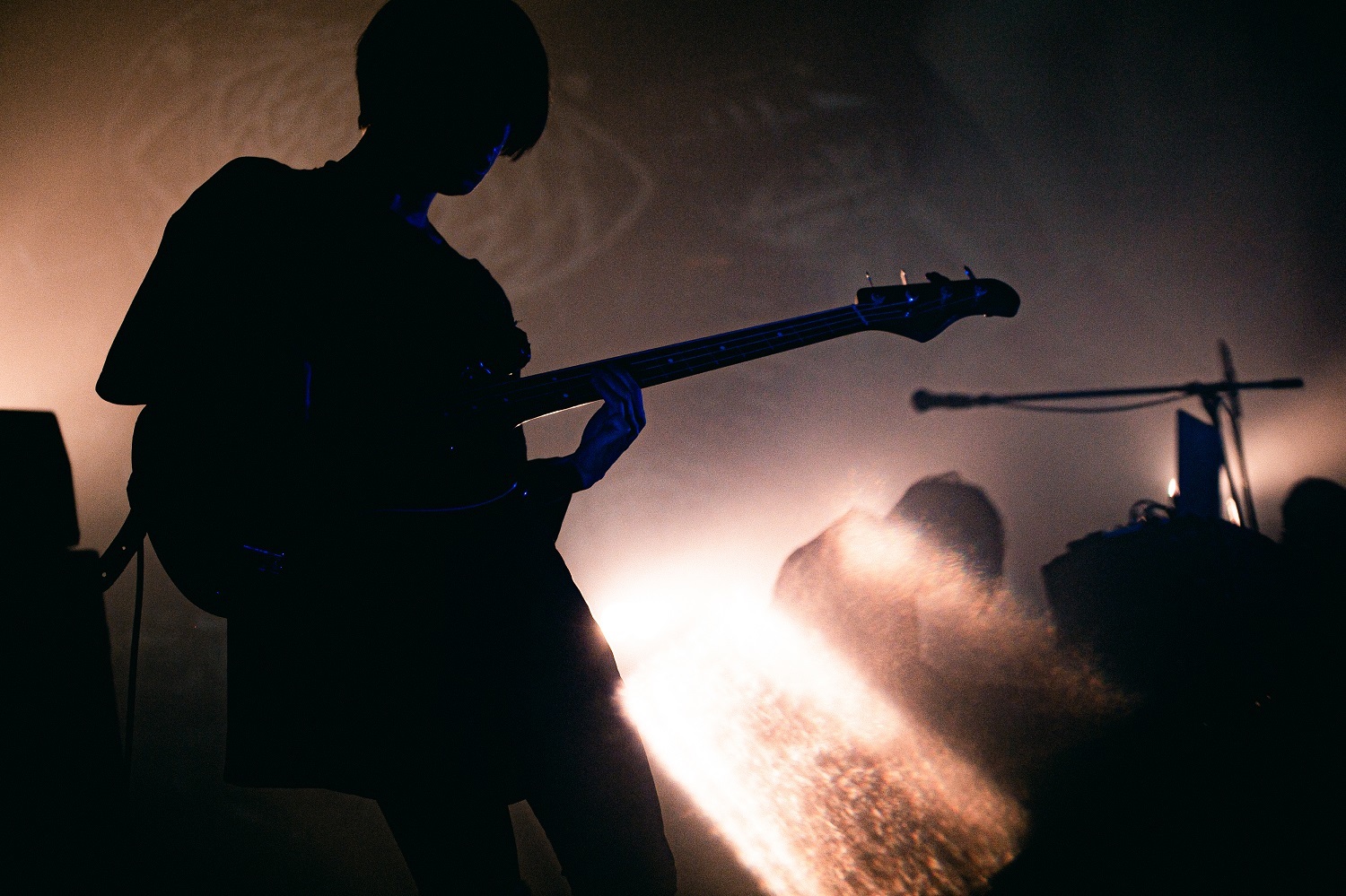 なかでも、「偽物の宴」や「故に枯れる」などで繰り広げられた、京寺の鬼気迫るポエトリーリーディングが鮮烈だった。人間の弱さや苦悩、できれば隠しておきたい胸の内を赤裸々に綴った京寺の言葉は、冴えない日常を過ごしている者にとって、思い当たる節があるものばかりだ。それもあって、次々に飛び込んでくる鋭い言葉達に、とにかく胸が苦しくなるのだが、ライヴが進んでいくごとに、ゆっくりと優しく心が和らいでいくような感覚にさせられる。「よかったら、分かり合えればいいなと思います」と話していた京寺は、「自分の歌詞に共感してくれる人がいると、自分と同じ気持ちの人がいたと思って安心する」そうだ。そして、こう話した。「今日のイベントでここに立っている人の曲に、みなさんも共感して集まって来ているんでしょう。だから、みんな味方だ。よかった」。ラストナンバーは「思い出は笑わない」。寂寥感がありながらも美しい映像をスクリーンに映しながら音を紡いでいたが、最後には悲痛な叫び声と轟音が会場を飲み込み、圧倒的な余韻を残したまま、イベントの幕を下ろした。