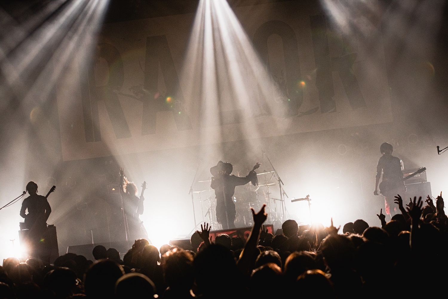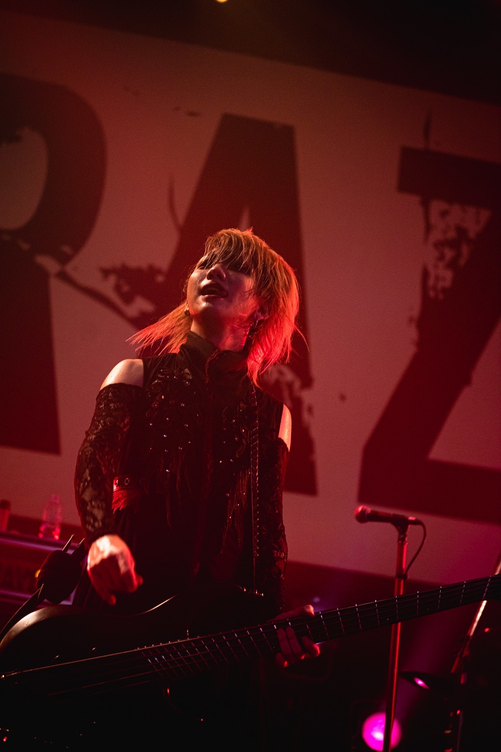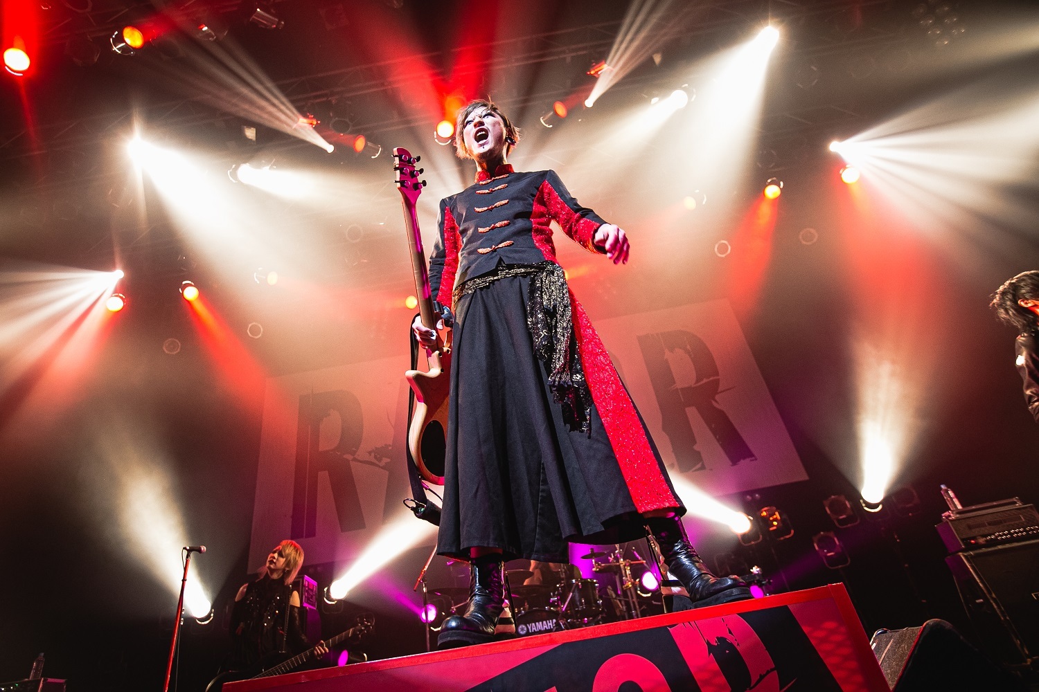 そのままギラつきまくったバンドサウンドで攻め倒す「LIQUID VAIN」を繰り出したのだが、今回のツアー開催にあたって「こういった異種格闘技的な舞台に立つとなったら絶対に負けられないなと思った」とコメントを寄せていただけあって、尋常じゃないほどの気合いの入りっぷりだ。重厚なギターリフとビートが興奮を突き上げる「嫌、嫌、嫌。」や、超重量級のサウンドを激しくドライヴさせていく「紅く散らばる華」など、メロディアスでありながら、ヘヴィミュージック好きのツボを激しく刺激する楽曲達を畳み掛けていく。