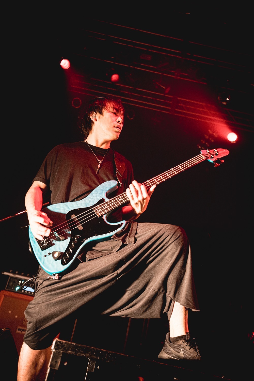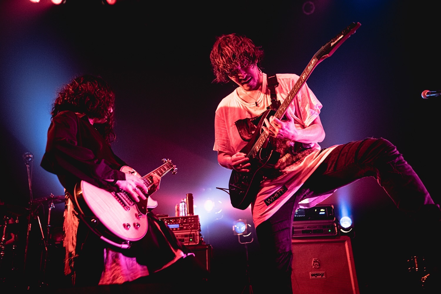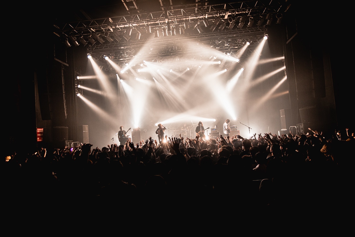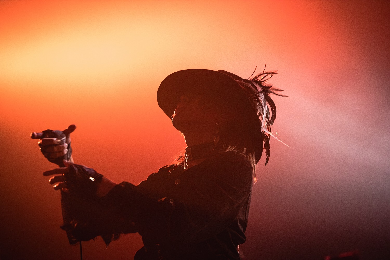 そのままギラつきまくったバンドサウンドで攻め倒す「LIQUID VAIN」を繰り出したのだが、今回のツアー開催にあたって「こういった異種格闘技的な舞台に立つとなったら絶対に負けられないなと思った」とコメントを寄せていただけあって、尋常じゃないほどの気合いの入りっぷりだ。重厚なギターリフとビートが興奮を突き上げる「嫌、嫌、嫌。」や、超重量級のサウンドを激しくドライヴさせていく「紅く散らばる華」など、メロディアスでありながら、ヘヴィミュージック好きのツボを激しく刺激する楽曲達を畳み掛けていく。