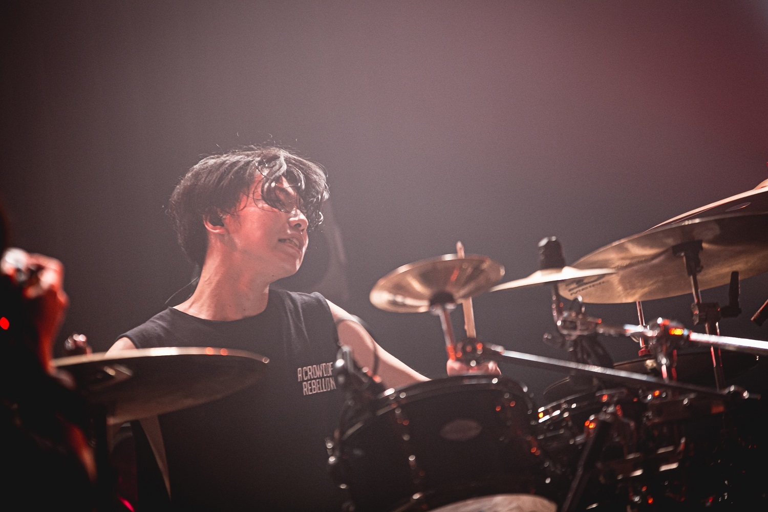 イベントもいよいよ大トリなのだが、その前にひとつだけ。このツアーの出演者達は、異なるシーンで活動しているため、普段は交わることのない者同士だったわけだが、その中でも、ひとつ共通項があったと思う。それは、“孤独”や“闇”といったものを感じられる楽曲が多い、ということだ。トレンドを加味したEDMで沸かせたCY8ERも、「恋愛リアリティー症」や「東京少女」などで聴かせる感傷的なサウンドや、「マイライフ」で描かれている景色は、かなり強烈なものがある。巧みなアジテーションでフロアを掌握していたRAZORも、「DAYBREAK」や「ハイビスカス」のように、狂気的な表現を交えながら、救われない感情や、報われない思いを歌っているものが多い。意表をつく曲展開を繰り広げつつ、ダークな曲調も多いa crowd of rebellionも、「O.B.M.A」のブレイクダウンで宮田が放った「お前らのヘイト、日頃の鬱憤、全部俺達にぶつけろよ」という言葉は、心の奥底で渦巻くドス黒いものをぶちまけさせるものだった。