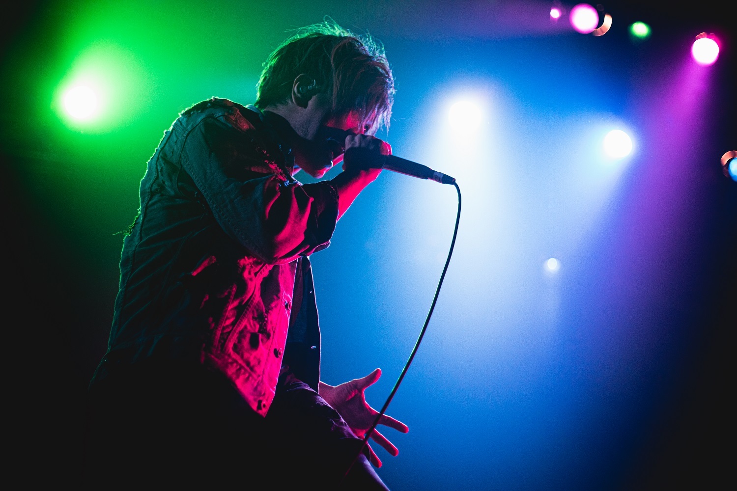 そんな壮絶なサウンドを背負い、ときに獰猛に叫び、ときに伸びやかに歌い上げ、「気持ち的には僕らもアイドル」とキャッチーなMCもする猟牙のパフォーマンスも求心力抜群で、フロアを巧みに扇動していく。ウォールオブデスを巻き起した「埋葬」では、フロアにダイブしたり、CY8ERのファンから借りたサイリウムを振り回したりと、自由にその空間を楽しんでいた。そんな彼の立ち居振る舞いが伝播したのだろう。