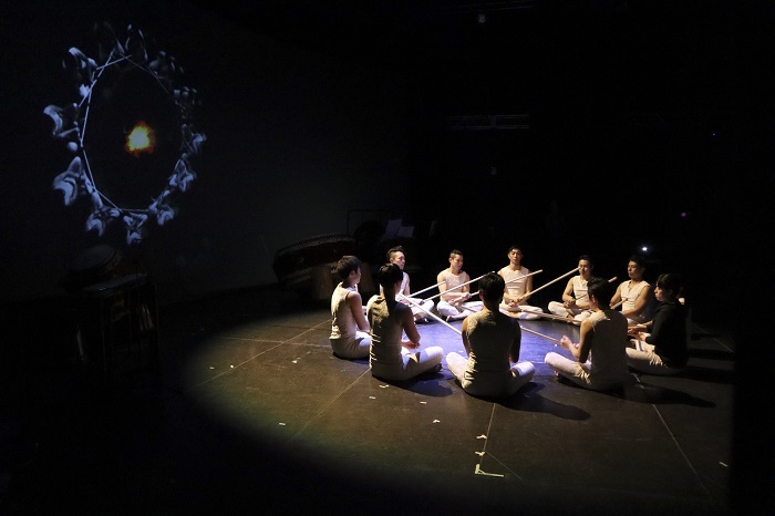 鼓童の演者が演奏する太鼓のひとつひとつには「トリガー」と呼ばれる装置がつけられており、太鼓の表面の振動に反応して照明と映像が変化する。こうすることで太鼓の音にインタラクティブに反応する演出を行い、音の大きさ、たたき方による振動の違いを視覚化する“サイマティクス”の取り組みとなる。