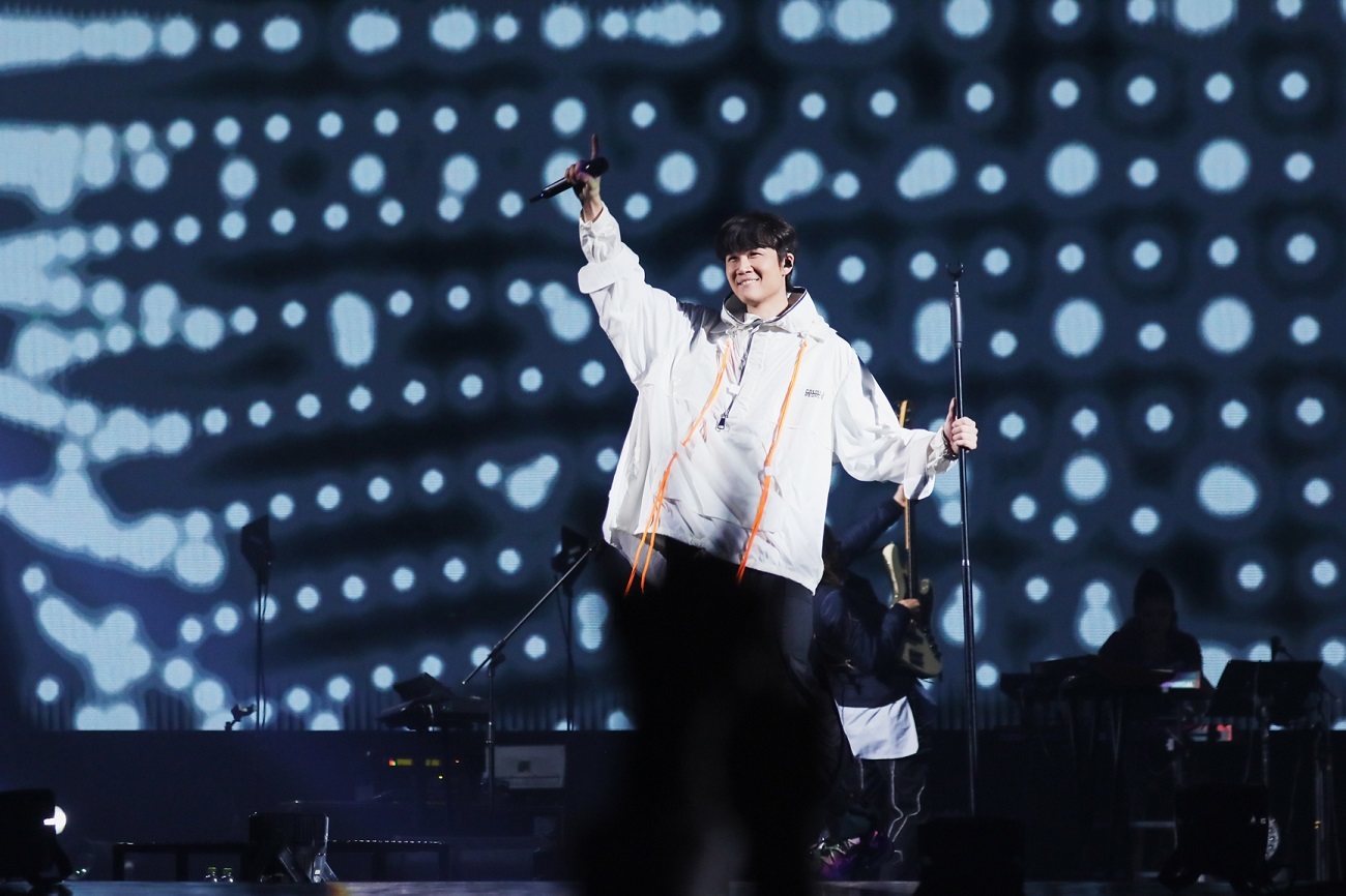 ゲスト・パートが終わり、ホーン・セクションとともに花道の中央にあるステージへ移動して披露されたのは、曲を作った阿奎がメイン・ボーカルをとり、最後に盧廣仲(クラウド・ルー)の「魚仔」へと流れていった新アレンジの「心向夏天/夏の憧れ」だった。自然発生的に会場中に灯ったスマートフォンのライトの美しさったら……。阿奎もポケットからスマホを取り出して撮影していたほどだ。