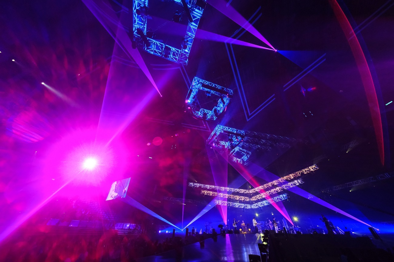 結構動きのある3人の姿を目で追っていたいが、曲ごとに変わるスクリーンの映像からも目が離せない。また、幾重にも交差するレーザーの光と、楽曲に合わせて時にダイナミックに、時に繊細に変化するムービングライトの演出がとにかく圧巻で、彼らのパフォーマンスをよりカラフルに、感動的に彩っていた。