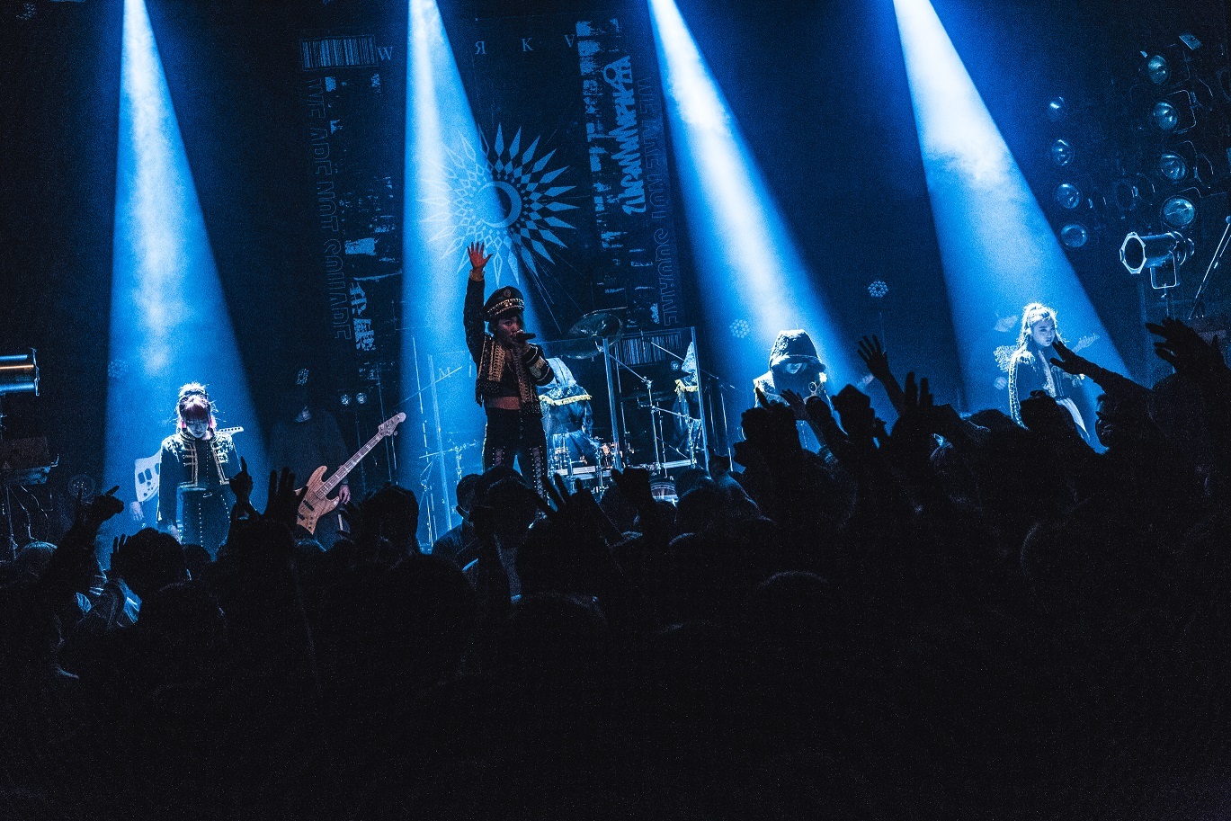 我儘ラキアが、東京・O-WESTにて新体制初となる東京ワンマンライブ『Don't fear a new day』を開催。気合い十分、バンドセットで挑んだこの日。突き上げるビートと爆音、4人の力強い歌声に怒号のような掛け声が上がった1曲目「There is surely tomorrow」から、フロアはモッシュやリフトでカオス状態! 星熊南巫のたくましく伸びやかなロックボーカル、MIRIの痛快な高速ラップ、海羽凜と川﨑怜奈の華麗で色気あるダンス、そしてバンドのアグレッシブかつ正確な演奏、自由に歌い踊る観客の熱狂ぶりと見どころ満載のライブに曲が進むごとに気持ちが高ぶって前のめりになってしまい、ついついメモを書く手が止まってしまう。ヤバイ、カッコいい!
