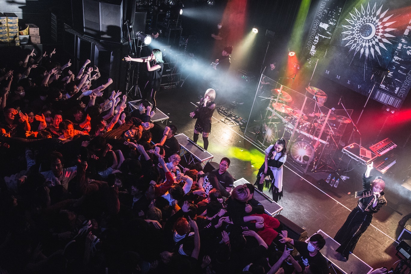 「ラキアのとっても可愛いところをお届けします」と始まった、ポップでエレクトロな「Sing with you」はフロアに巨大サークルを生み、肩を組んで声を合わせてジャンプする観客が会場を揺らす。キャッチーなサビにみんなで歌声と手振りを合わせた「Leaving」、星熊南巫の煽りに会場中が吠声を上げた「reflection」と、全員が一体となって最高の空気を作り上げていった終盤戦。天井知らずの盛り上がりを見せるフロアの熱狂に応えるべく、メンバーのパフォーマンスはさらに激しさと切れ味の鋭さを増し、バンド演奏もより激しく強固に鳴り響く。モッシュやダイブの嵐が起きるカオスなフロアにはちゃんと秩序があり、ヒートアップするファンに4人は全力の歌とパフォーマンスで応える。そこにラキアとファンが構築してきた互いの信頼とリスペクトが見えてきて、グッと来てしまった。
