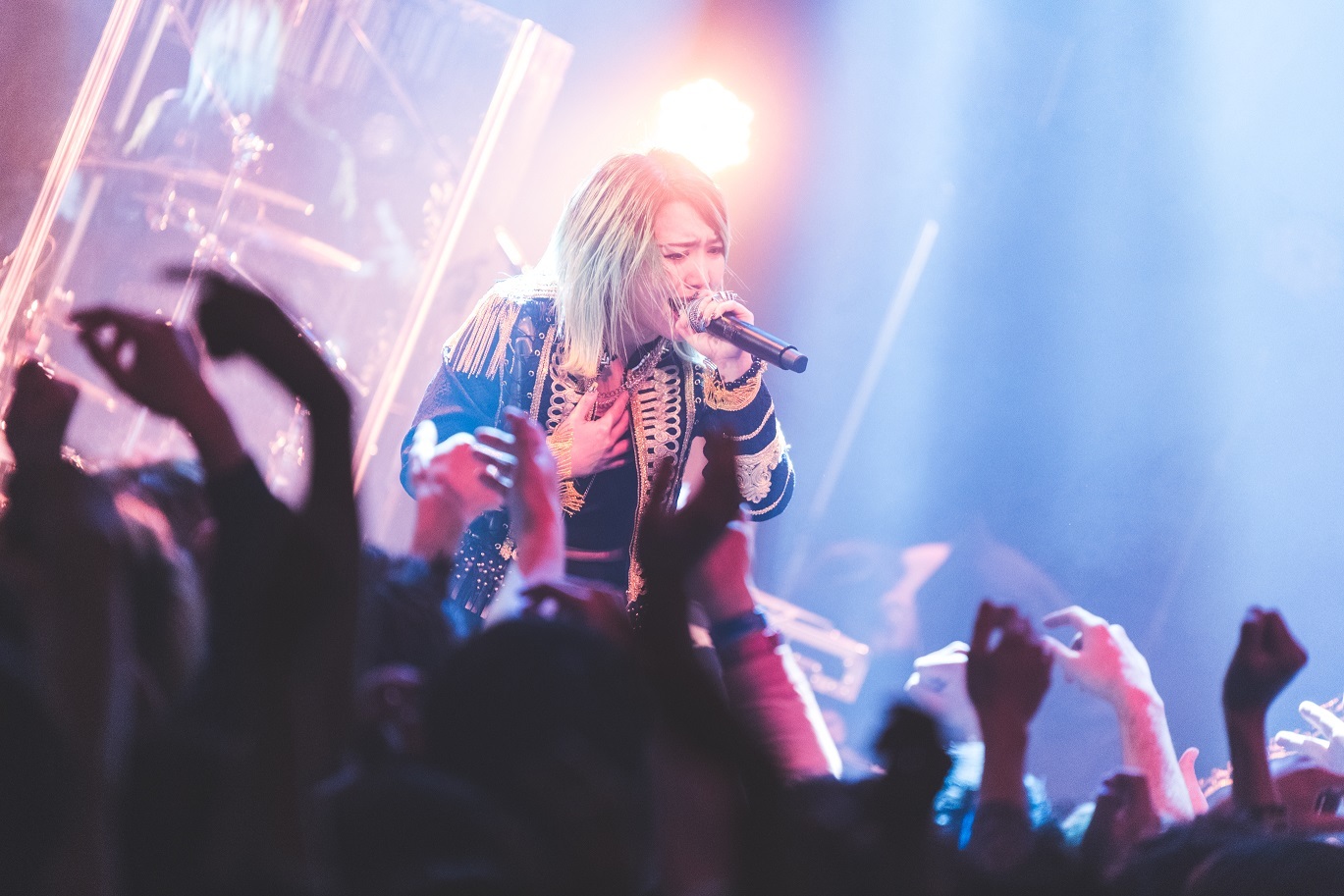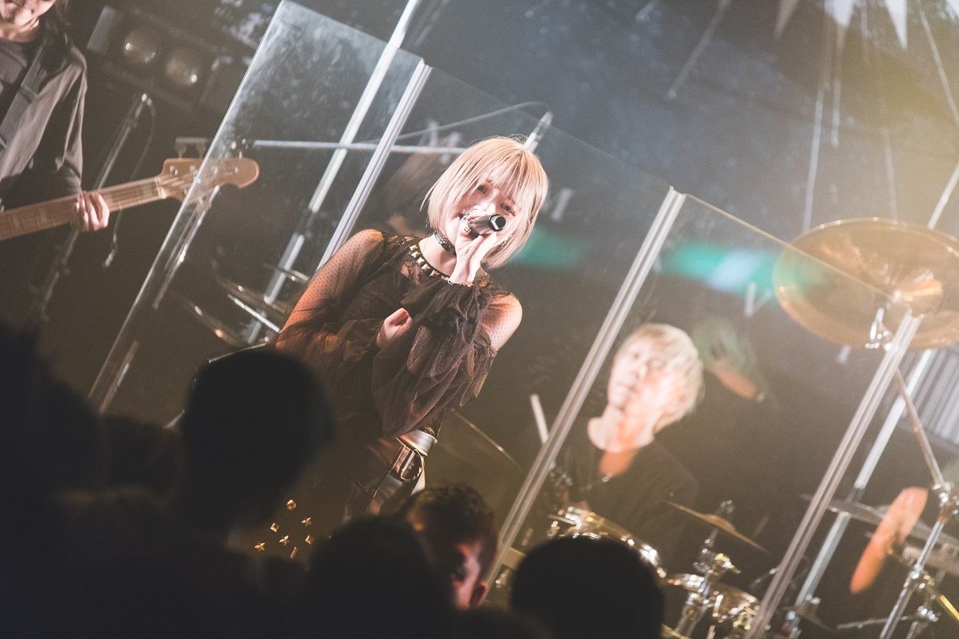 星熊南巫がステージに残り、たっぷり気持ちを込めた感傷的な歌声で聴かせた「cry pot」、ラウドな曲調にピアノや悲痛なハイトーンが映える新曲「rain」、鍵盤のみのシンプルな演奏に4人が高い歌唱力を聴かせた「The Reason」、「Days」のアコースティック・ヴァージョンなど。ワンマンならではの特別な演出でラキアの様々な側面を見せた前半戦を終え、ステージを去る4人。SE「Beginning of the story」が鳴って後半戦が始まると、疾走感ある「ゼッタイカクメイ」で、再びフロアを掻き回す。緩急付けたライブ展開は観る物を夢中にし、一瞬たりとも目を離すことが出来ない。