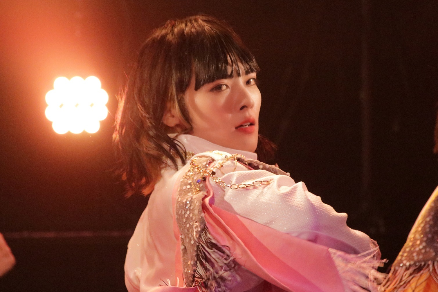 また、公演によって担当するメンバーが替わるソロ演目とプロデュース演目も、今ツアーの見どころ。この公演でソロ演目を担当したのは、赤いラメ衣装で登場したさっさーだ。自らのイメージカラーであるレッドのペンライトがフロアを埋め尽くす光景を目の当たりにして緊張してしまったそうで、歌詞を間違えてしまう場面もあったが、オーディエンスの温かなコールを浴びながら、先輩ユニット・MeseMoa.の「オーロラ曲技団」を歌いきった。