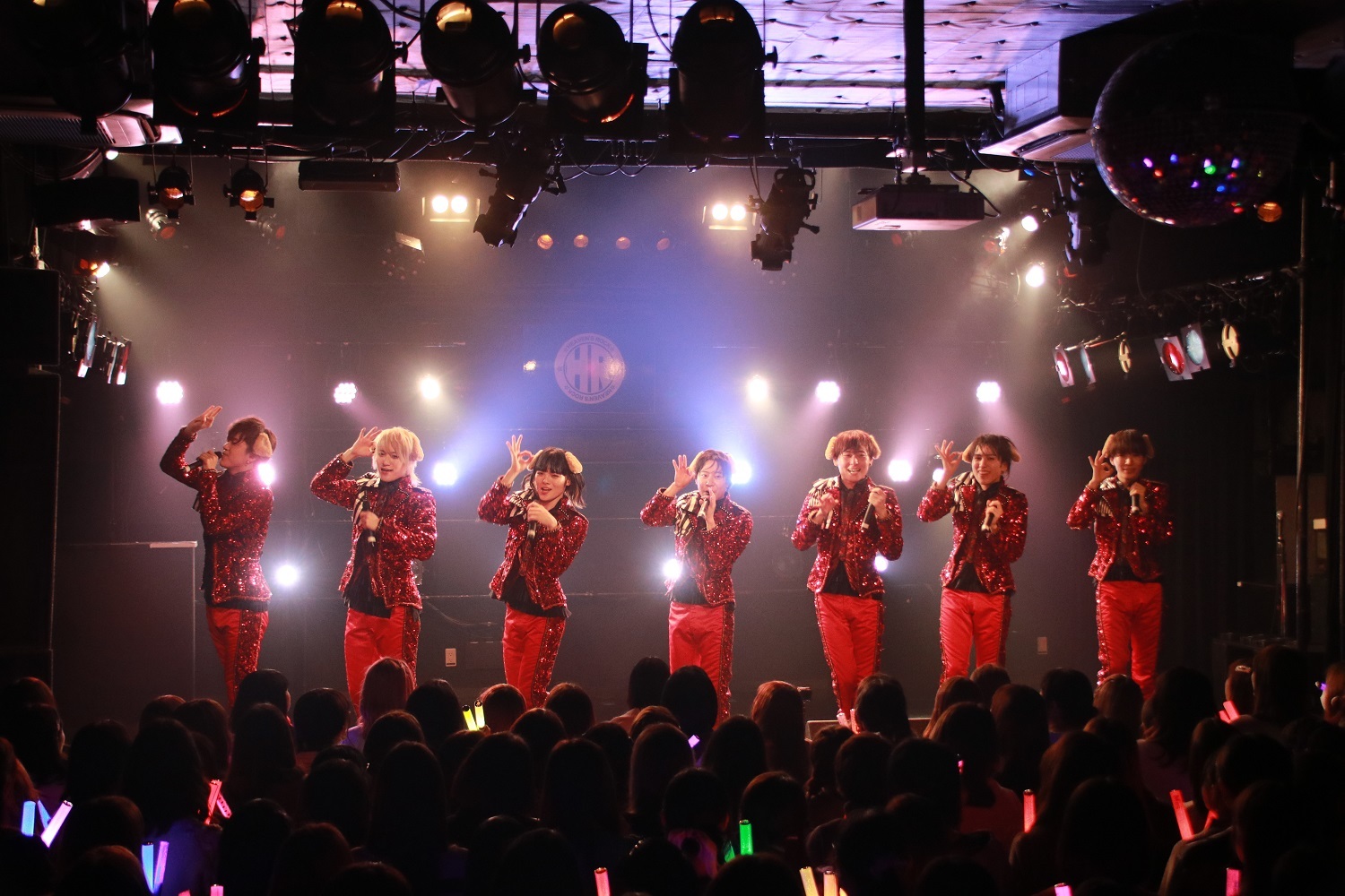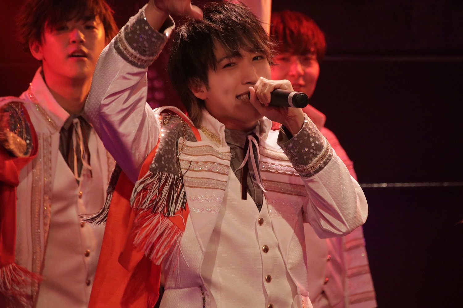 問答無用のキラーチューン「Love!×2 Chu!×2 Yeah!!×3」では、れおがフォーゲルパートを、え~すけがとみたけパートを、ぱんめんが野崎弁当パートを、たっくんが白服パートを、ゆじまるがにーちゃん&気まぐれプリンスパートを、渚こうたがノックソパートを、さっさーがあおい&二番煎じパートを担当して、7人でギュッと寄ったり、ジャレ合ったりしながら、最後には投げキッス!