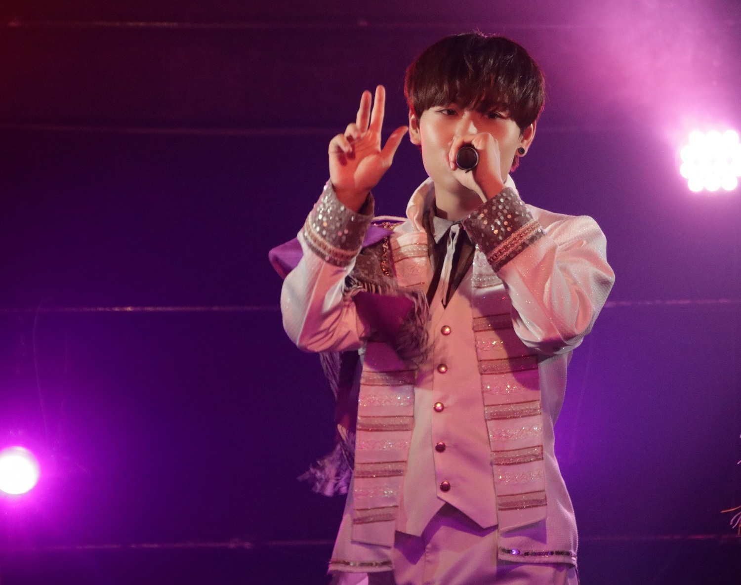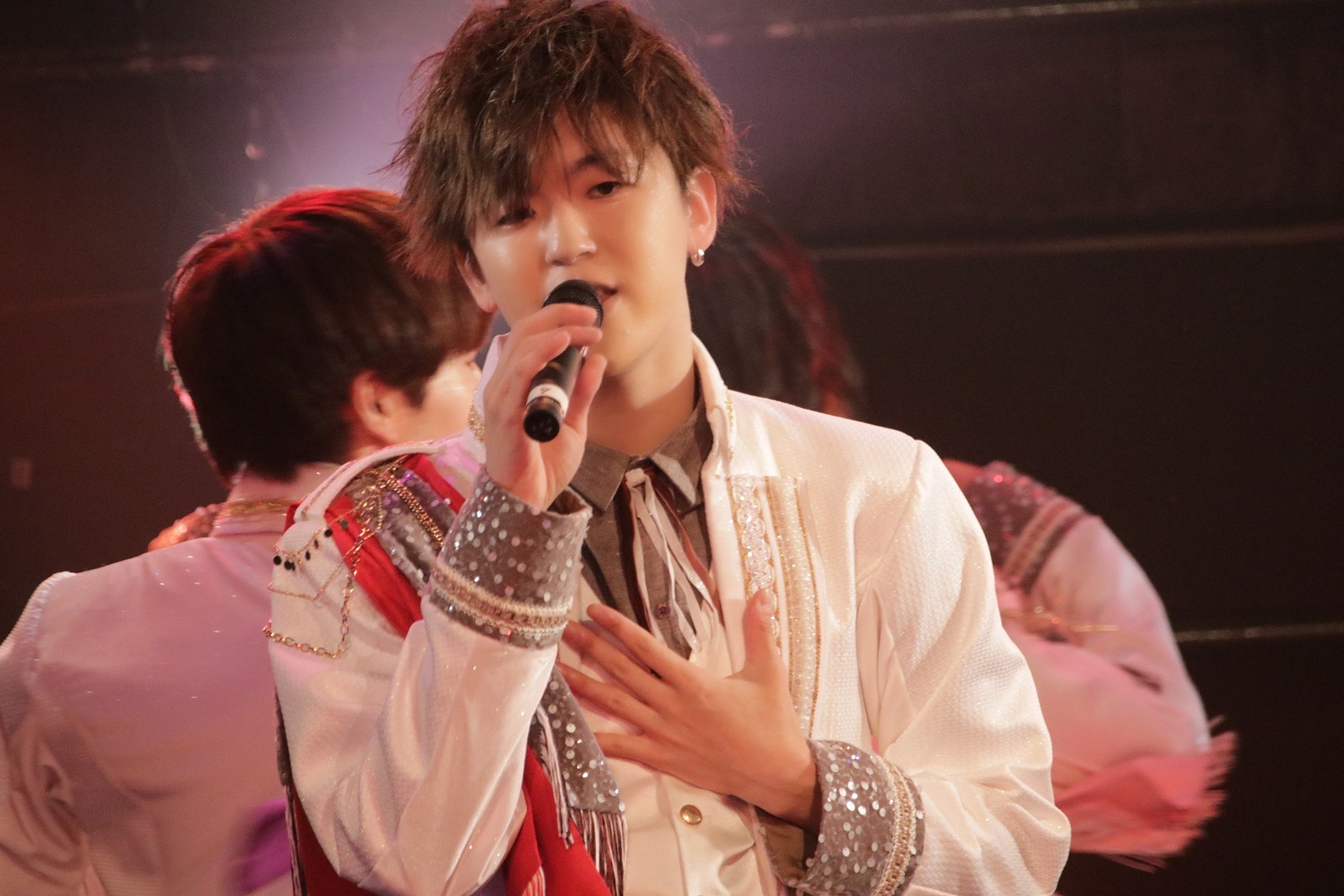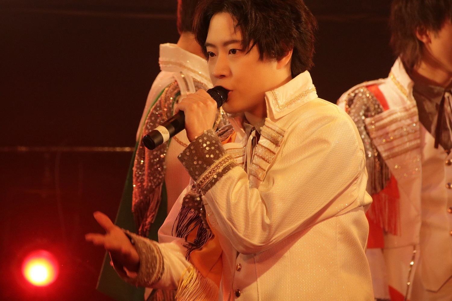 「LOVE ME DO ~どこにもいっちゃだメェ~」の<何処にも行っちゃダメ>というフレーズ、ぱんめん&ゆじまるのハグ、たっくん&ゆじまるの熱のこもった歌のかけ合いで昂らせてくれたあとは、グループ内ユニットのパフォーマンスへ。え~すけ、ゆじまる、さっさーによる「賽は投げられた」はラテンモードで、フラメンコ的な振付&艶っぽく絡む3人の姿にドキっとさせられる。いっぽう、れお、ぱんめん、たっくん、渚こうたによる「ラブチョコ」はハジけるポップナンバーで、歌声も振付も実にかわいらしい。さらに、ソロ曲「Let it Shine」で<君の花が咲くようにここにいるから>と心を込めて歌ったのはたっくん。時にビターに、時にスウィートに、色とりどりの表現欲求が鮮やかに花開いていく。