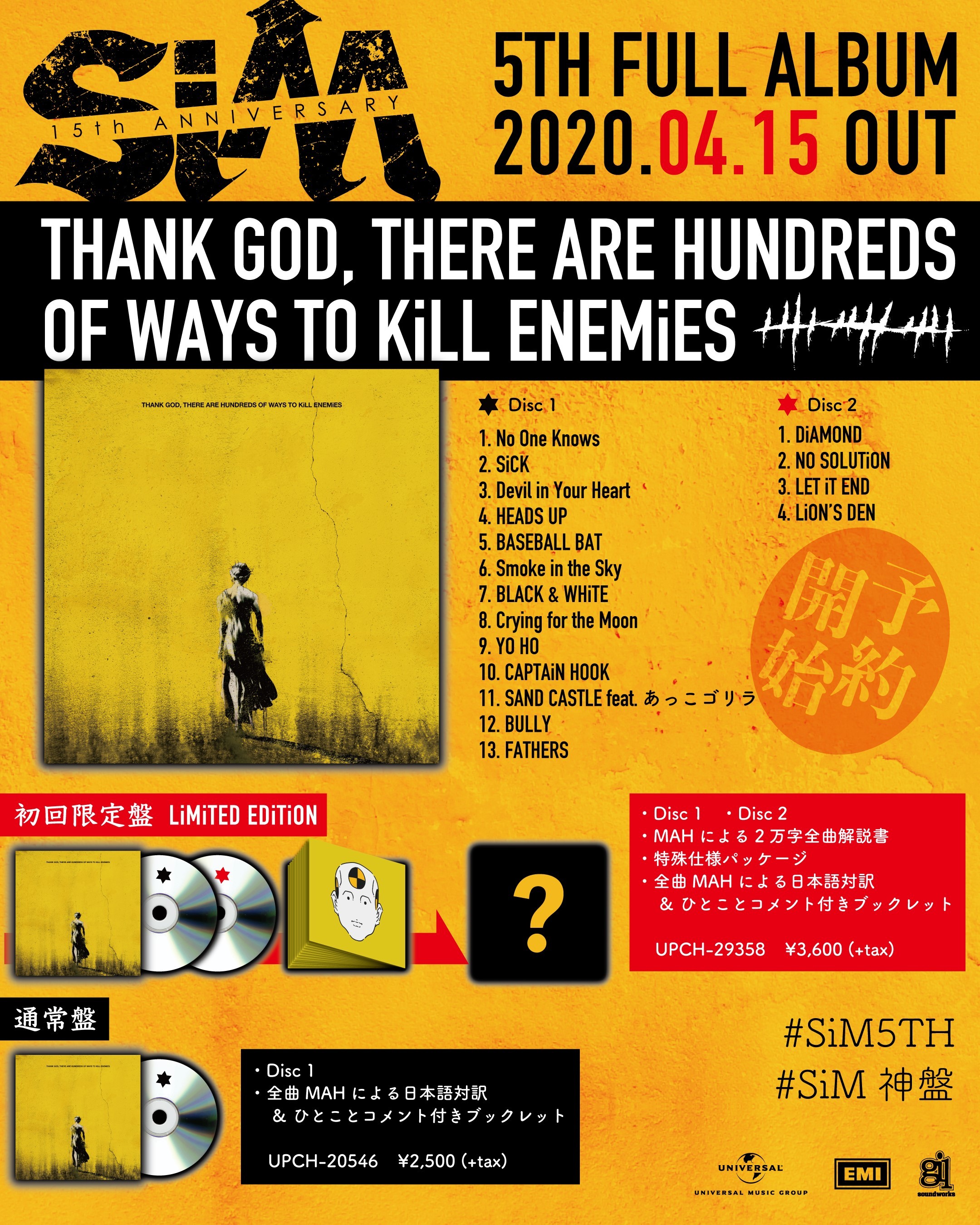 SiMのアルバム『THANK GOD, THERE ARE HUNDREDS OF WAYS TO KiLL ENEMiES』のリリース日、ジャケット写真ほか詳細が発表された。