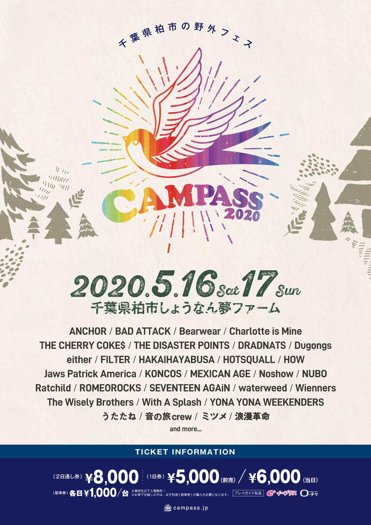 5月16日(土)・17日(日)、千葉県柏市の柏しょうなんゆめファームにて野外音楽フェス『CAMPASS 2020』が開催される。