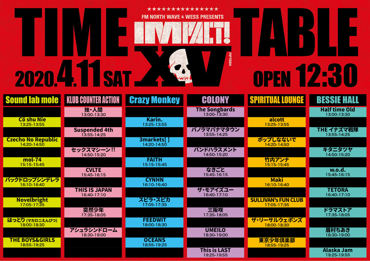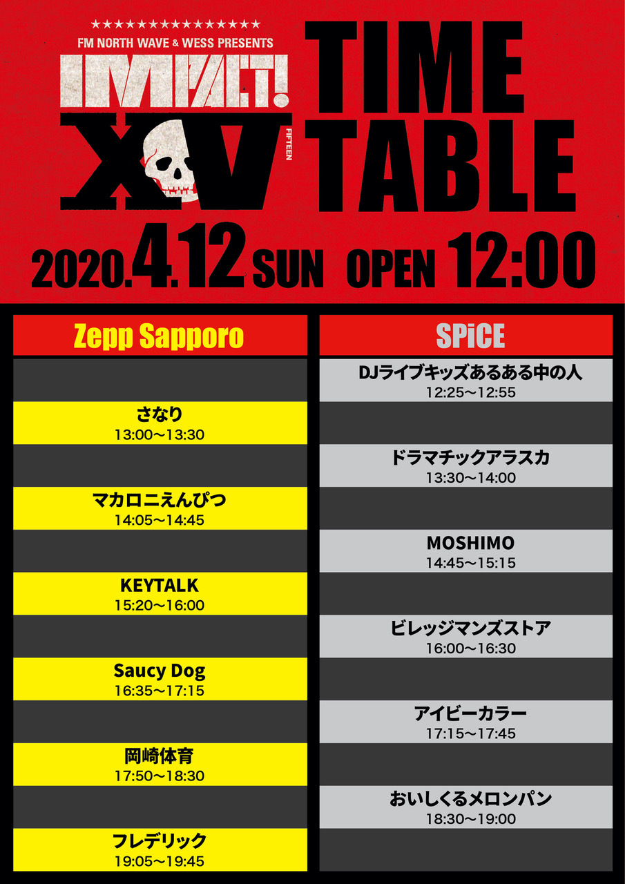 また、『IMPACT!XV』に出演する全56組のタイムテーブルが解禁された。