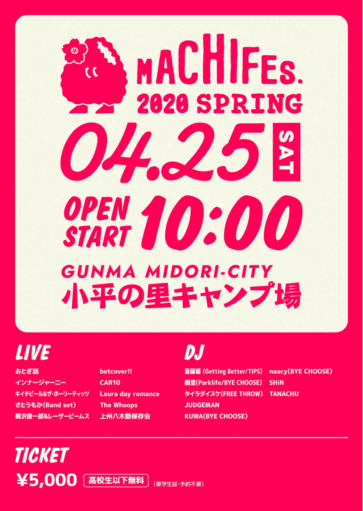 4月25日(土)に群馬県みどり市大間々町小平の里キャンプ場で開催される野外フェス『MACHIFES. 2020 SPRING』の第二弾出演者が発表された。