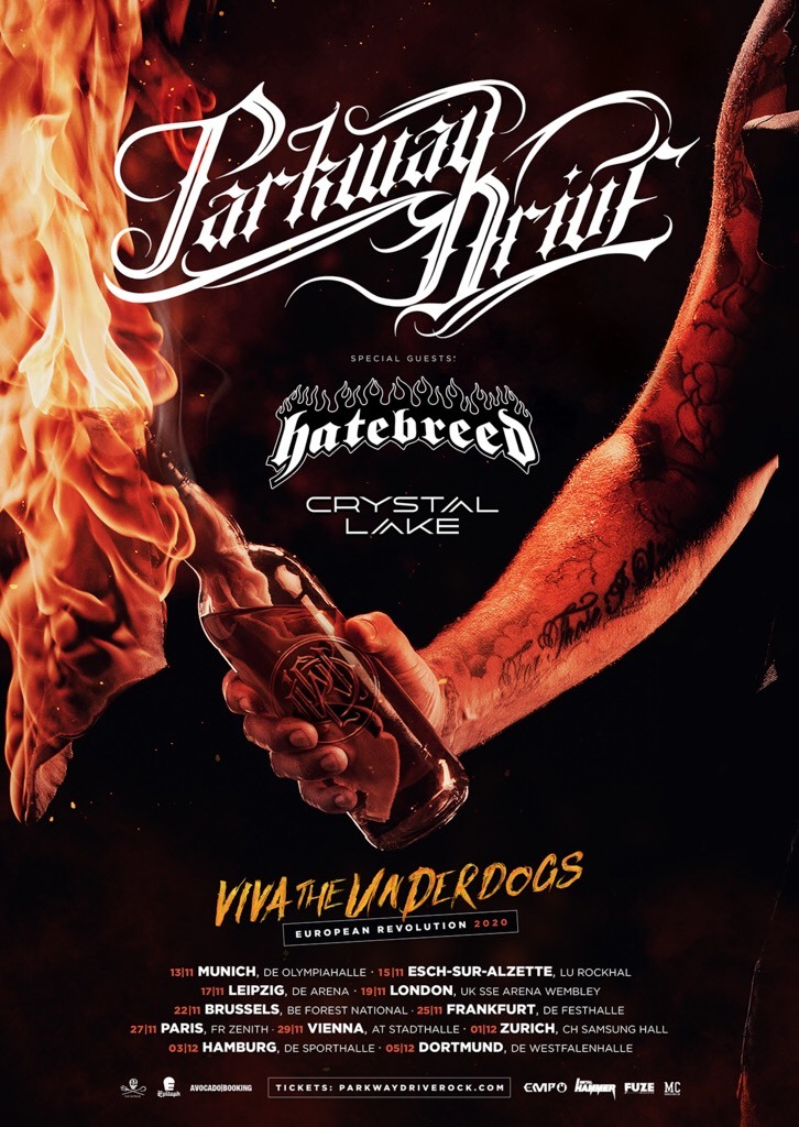 Crystal Lakeがオーストラリアのメタルコアバンド、パークウェイ・ドライヴのヨーロッパツアー『VIVA THE UNDERDOGS – EUROPEAN REVOLUTION 2020』に参加することを発表した。