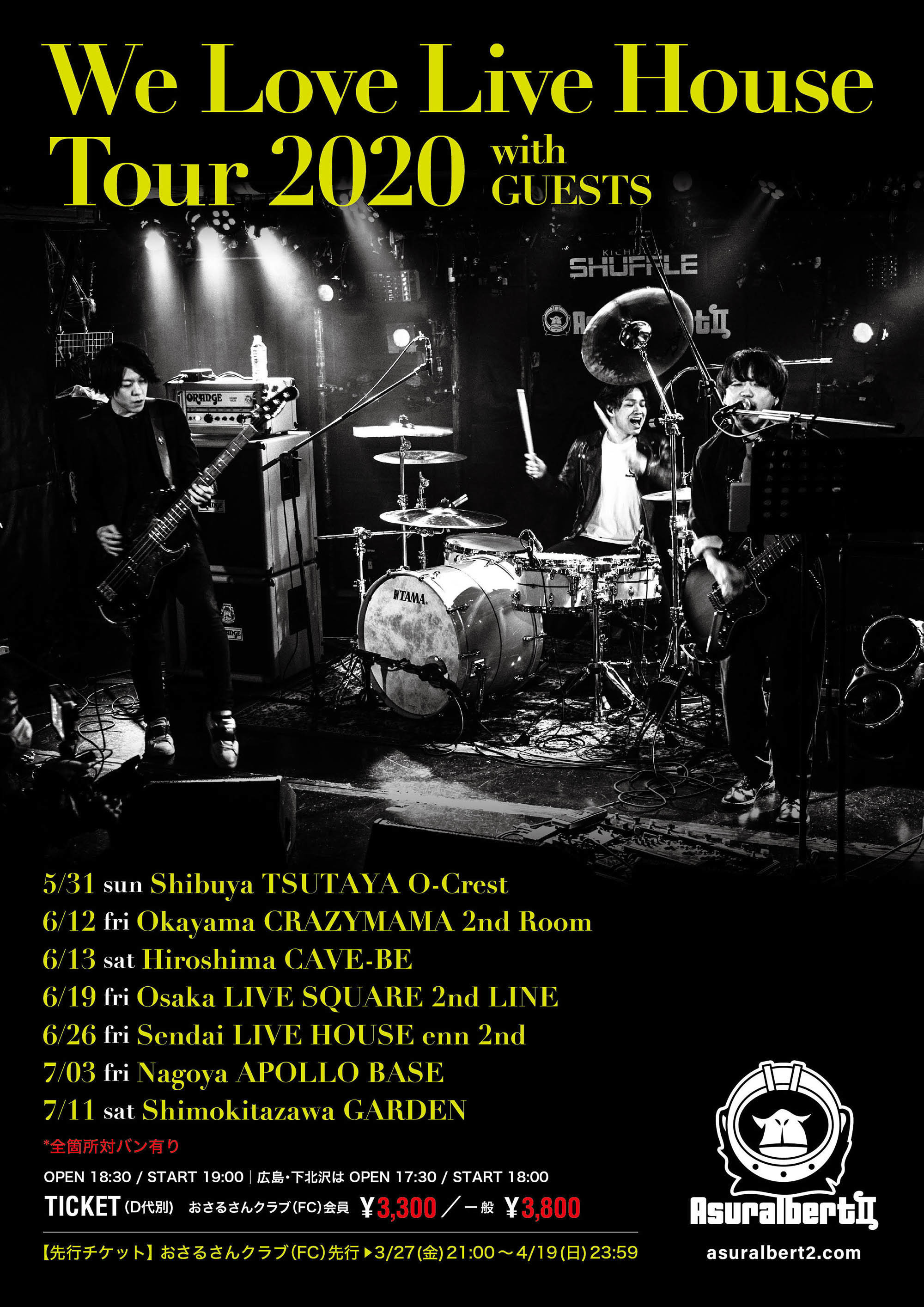 各地3マンで行われる予定で対バンは後日アナウンスされる。チケットは本日オープンしたオフィシャルファンクラブ『おさるさんクラブ』から先行受付が開始となっている。