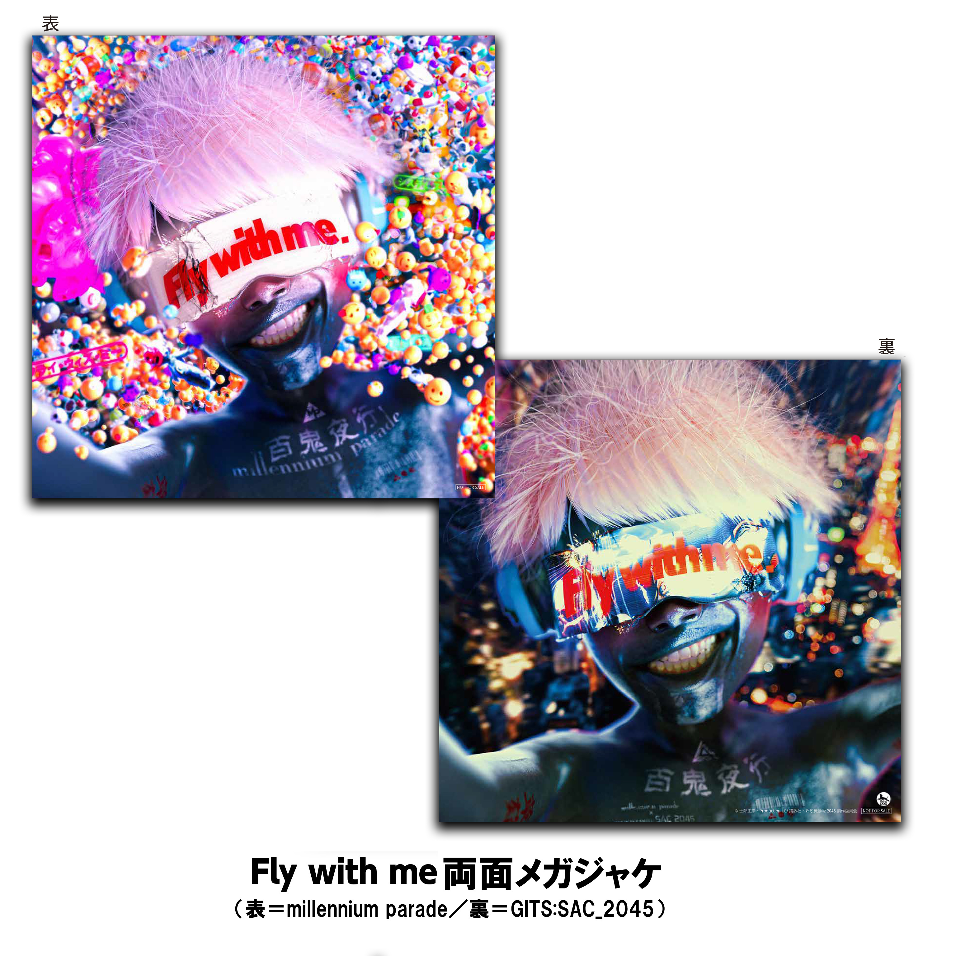 「Fly with me」は、4月22日に2タイトルが同時リリースされる。スティーヴ・アオキのリミックスを収録したCDシングルと配信シングルはmillennium parade × ghost in the shell: SAC_2045名義としてビクター・フライングドッグからリリース。